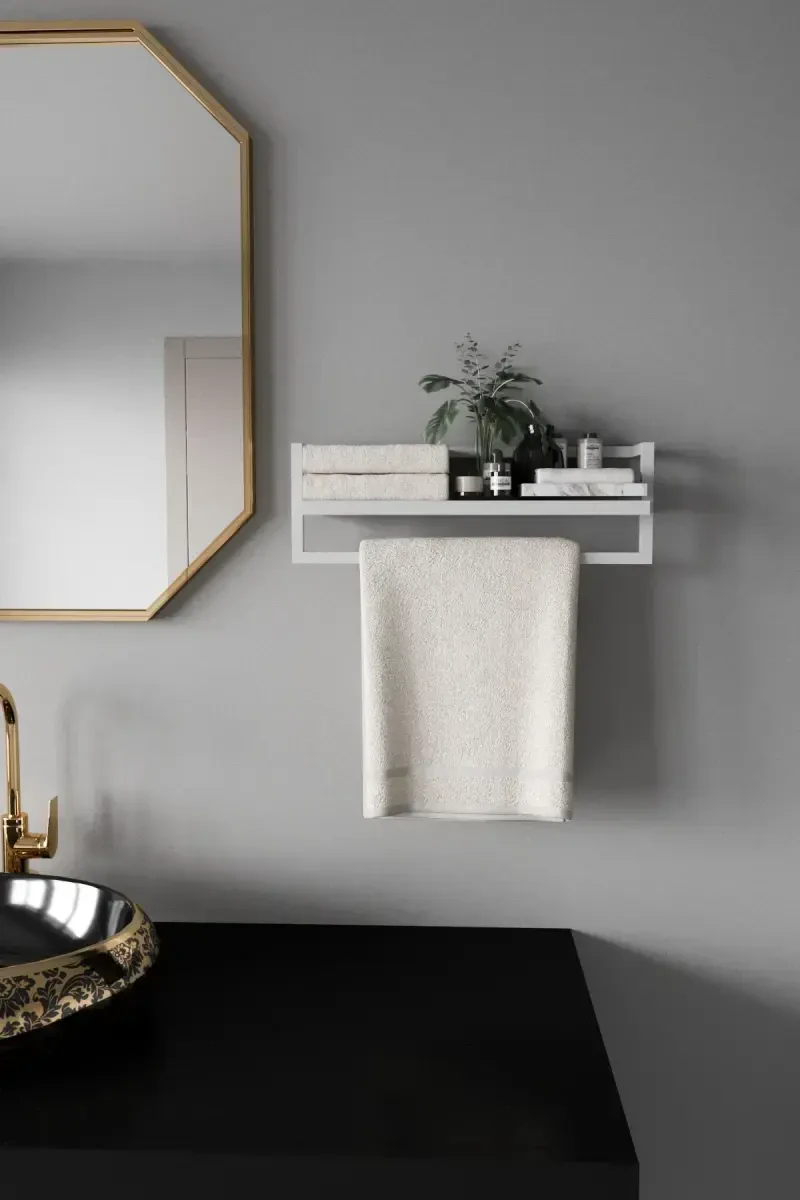 Towel Rack Bathroom Shelf Towel Holder Scarf Accessory Care Products Bathroom Kitchen Organizer Spice Rack - White is an ideal choice for making your living spaces more organized and functional. You can neatly store your towels, shampoos, shower gels, and other personal care products in your bathroom, thus making your bathroom look more spacious and tidy. In the kitchen, you can easily organize your spices, sauces, small kitchen utensils, and other materials. This multi-purpose shelf is not limited to just the bathroom and kitchen but can also be used in other areas of the house. For example, it is an ideal solution for storing your scarves, gloves, and other accessories in the entryway. You can also use it to organize your books, files, and other office supplies in your study room. The white color is a timeless option that adapts to all kinds of decorations. Whether decorated in a modern, classic, minimalist, or bohemian style, this shelf easily adapts to any environment and adds elegance to the space it is in. The product's design has been carefully crafted to meet both aesthetic and functional needs. Made from durable materials, it offers long-lasting use. Thanks to its easy-to-assemble structure, it is ready for use in a short time. This shelf is not only an organizer but also a decorative element. Thanks to its wall-mountable design, it saves space and helps make your living spaces look more spacious and airy. You can customize the shelf according to your personal taste with decorative objects you place on it and add a unique touch to your home. Whether you create a spa atmosphere in the bathroom or a stylish spice corner in the kitchen, this shelf is a versatile product that you can use for different purposes by using your imagination. Towel Rack Bathroom Shelf Towel Holder Scarf Accessory Care Products Bathroom Kitchen Organizer Spice Rack - White is the perfect solution to make your living spaces more organized and aesthetic by combining practicality, elegance, and durability. Thanks to this product, you can easily organize your belongings, eliminate clutter, and make every corner of your home more enjoyable.