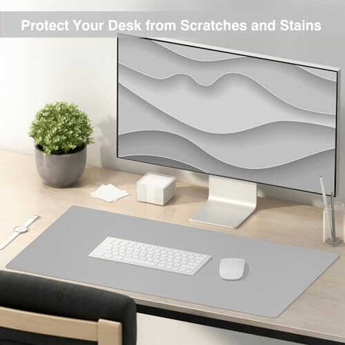 TOWWI Двусторонняя Подставка для Стола, Большой Коврик для Стола, Водонепроницаемый Защитный Коврик для Мыши, Кожаная Подставка для Стола для Клавиатуры и Мыши (32" x 16", Серый/Серебристый)