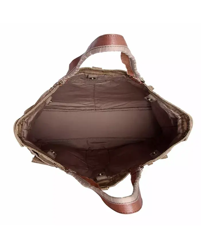 kanvas çanta, tote bag, zeytin yeşili çanta, omuz çantası, seyahat çantası, laptop çantası, bitkisel boyalı çanta, deri detaylı çanta, geniş çanta, kadın çanta