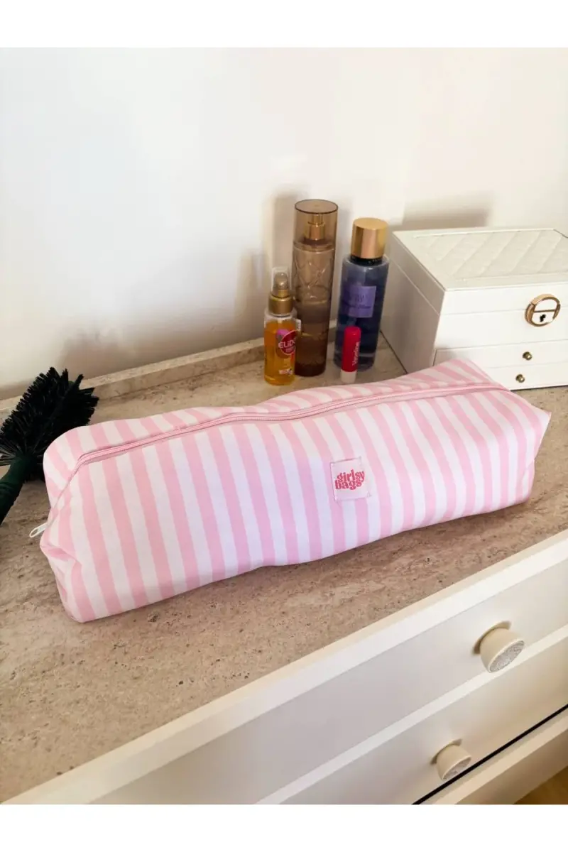 Bu ürün girlsybags tarafından gönderilecektir.Kampanya fiyatından satılmak üzere 50 adetten fazla stok sunulmuştur.Bir ürün, birden fazla satıcı tarafından satılabilir. Birden fazla satıcı tarafından satışa sunulan ürünlerin satıcıları ürün için belirledikleri fiyata, satıcı puanlarına, teslimat statülerine, ürünlerdeki promosyonlara, kargonun bedava olup olmamasına ve ürünlerin hızlı teslimat ile teslim edilip edilememesine, ürünlerin stok ve kategorileri bilgilerine göre sıralanmaktadır.Bu üründen en fazla 20 adet sipariş verilebilir. 20 adedin üzerindeki siparişleri Trendyol iptal etme hakkını saklı tutar. Belirlenen bu limit kurumsal siparişlerde geçerli olmayıp, kurumsal siparişler için farklı limitler belirlenebilmektedir.15 gün içinde ücretsiz iade. Detaylı bilgi için [page="return_conditions"]tıklayın .- Sıvı geçirmez kumaş yapısı sayesinde saç maşası ve düzleştiricilerinizi güvenle saklayın.- Pembe çizgili tasarımıyla şık ve modern bir görünüm sunar, seyahatlerinizde tarzınızdan ödün vermezsiniz.- Sıvı geçirmez özelliği ile saç maşası ve düzleştiricilerinizi nemli ortamlardan korur, uzun ömürlü kullanım sağlar.- Airwrap ve Airstrait modellerine uyumlu yapısıyla geniş bir kullanım yelpazesi sunar.- Seyahat çantasının pratik ve hafif tasarımı, kolay taşınabilirliğiyle konforlu bir seyahat deneyimi vadediyor.39x15 cm. ölçüleri vardır.