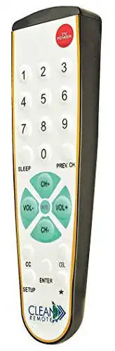 Clean Remote CR3BCB Universal TV Remote yordamida siz televizoringizni osongina boshqarishingiz, kanallarni o'zgartirishingiz, ovoz balandligini sozlashingiz va boshqa funktsiyalardan foydalanishingiz mumkin.