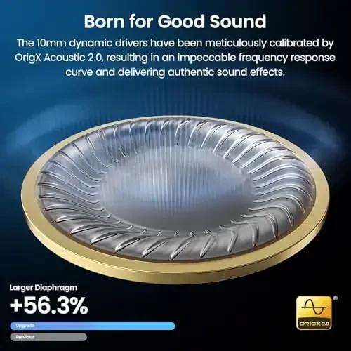 TOZO T12 (Компактное Эргономичное Издание) Беспроводные Наушники Bluetooth 5.3, Микрофон с шумоподавлением ENC для звонков, 55 часов воспроизведения, настройка эквалайзера в приложении, водонепроницаемость IPX8, цифровой дисплей с LED, Премиум-звук