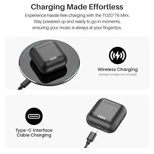 TOZO T6 выводит ваши музыкальные впечатления на новый уровень благодаря своей мощной производительности и удобным функциям. Его стильный дизайн и удобство в использовании делают его идеальным выбором для пользователей всех возрастов и вкусов.
