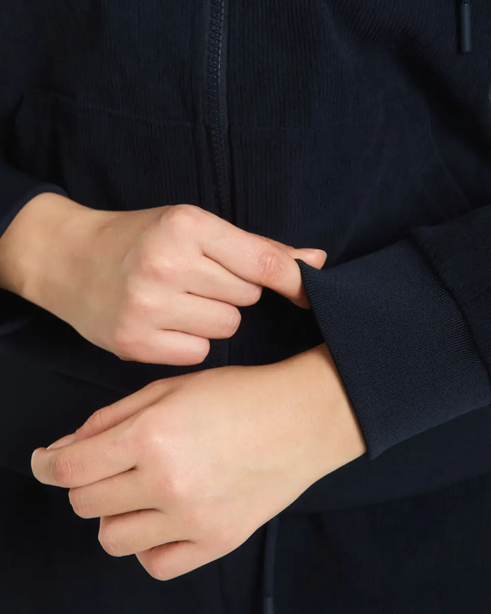 This product has a versatile design that you can easily use in both your sports activities and daily life. The 100% polyester material offers long-lasting use and easy care. The dark blue color allows you to create different combinations, while the hooded design provides extra protection.