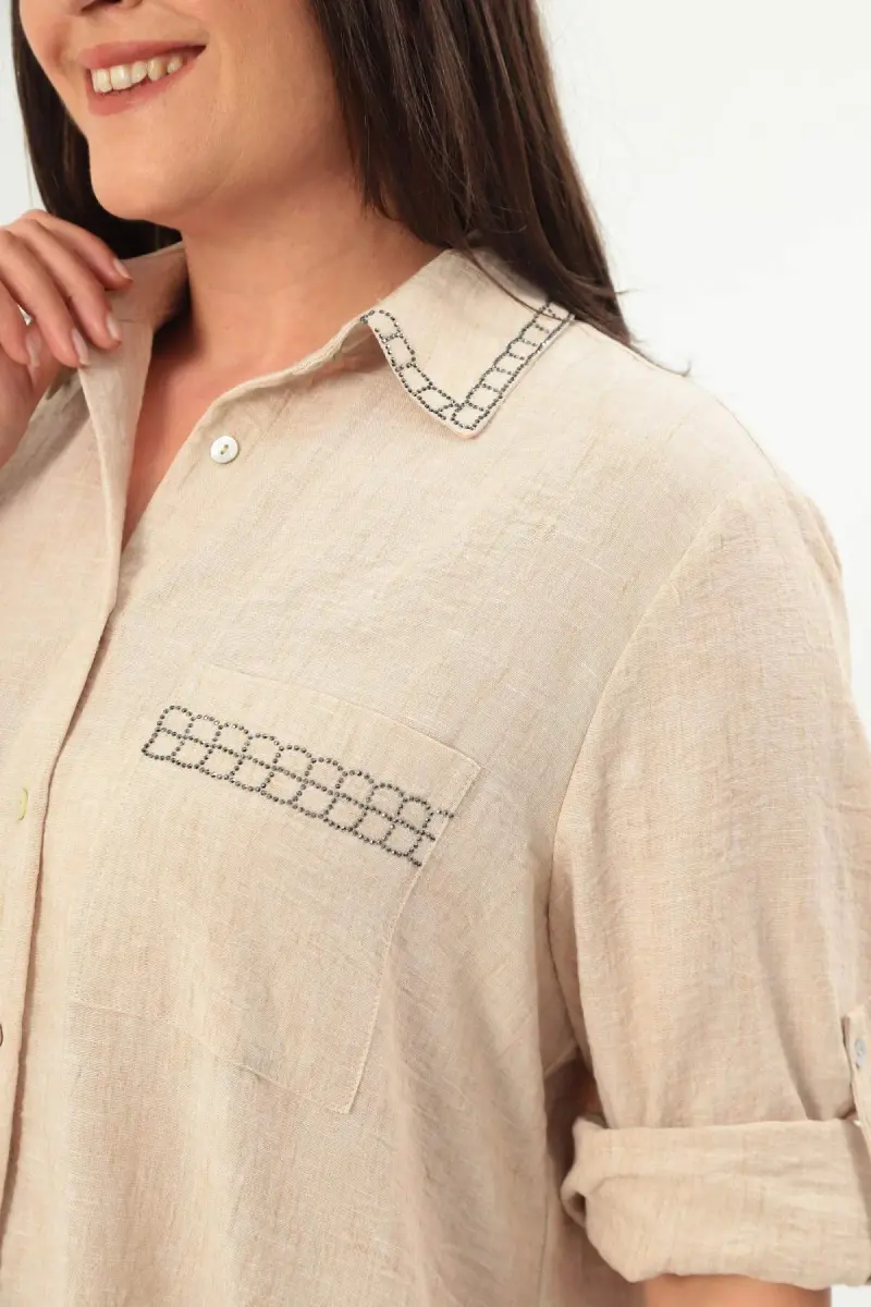 Рубашка большого размера, рубашка с каменным принтом, бежевая рубашка, хлопковая рубашка, трендовая рубашка, удобная рубашка, элегантная рубашка, женская рубашка, повседневная рубашка, рубашка для особых случаев