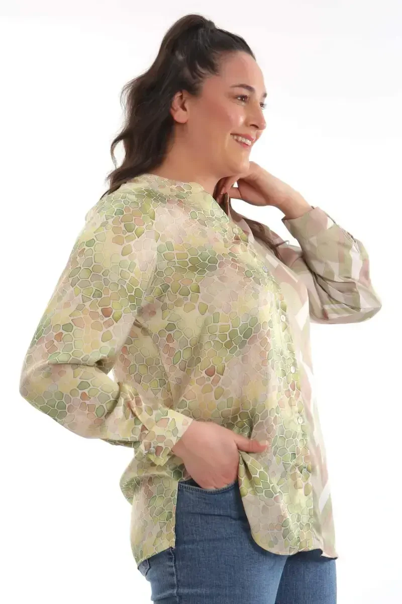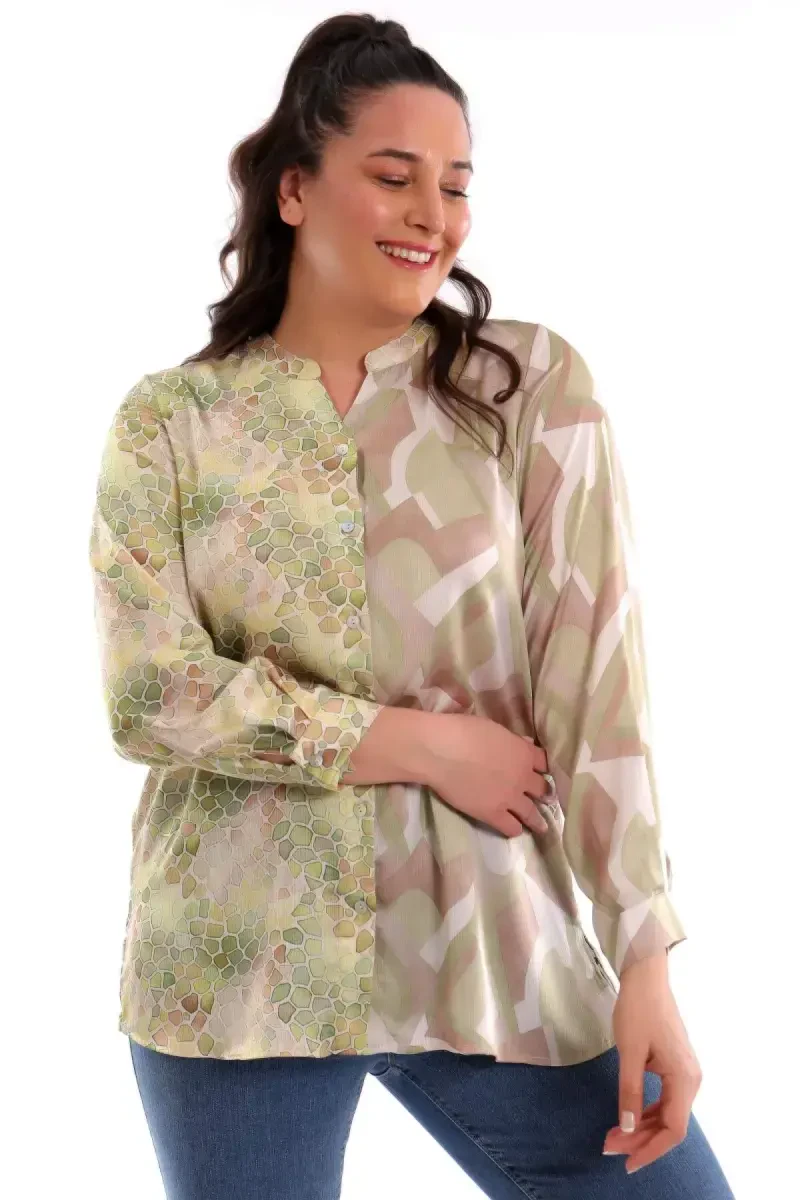 Освежите свой стиль весенней яркостью с зеленой рубашкой большого размера Trend42plus с круглым вырезом и мозаичным принтом! Эта привлекательная рубашка привлечет внимание своим удобным кроем и уникальной тканью с мозаичным узором. Дизайн, обогащенный переходами узоров, добавит неповторимую атмосферу каждому вашему образу. Эта рубашка с длинными рукавами и длиной до бедер - идеальный вариант для вашего гардероба, предлагающий как стильный, так и удобный вариант. Сочетайте ее с тканевыми брюками, чтобы продемонстрировать свой шикарный вид в офисе, или создайте непринужденный образ с джинсами в повседневном стиле. Зеленая рубашка большого размера Trend42plus, благодаря своей легкой текстуре, создаст ощущение, что ее нет на вас в течение всего дня, и поможет вам сохранить высокий уровень энергии даже в самые напряженные дни. Идеальный выбор, чтобы отразить энергию весны и лета в вашем стиле. Учитывая размеры 44 размера на модели, она обеспечивает стильный вид, облегающий тело в каждом размере. 100% полиэстер ткани повышает долговечность рубашки, облегчает глажку и обеспечивает ее долговечность. Если вы ищете стильный и удобный вариант в своем гардеробе, то зеленая рубашка большого размера Trend42plus с круглым вырезом и мозаичным принтом - это то, что вам нужно. Подчеркните свой стиль в любой обстановке с помощью этой рубашки и поразите всех своей энергией!
