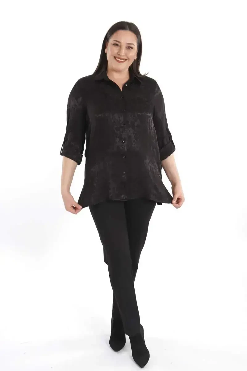 Trend42plus Büyük Beden Leopar Desenli Floş Siyah Viskoz Gömlek ile stilinizi bir üst seviyeye taşıyın! Bu eşsiz tasarım, konforu ve şıklığı bir araya getirerek gardırobunuzun vazgeçilmez parçası olmaya aday. Leopar deseninin zamansız cazibesi, siyahın asaletine eşlik ederken, floş viskoz kumaşın hafif ve akıcı dokusu gün boyu rahatlık sunar. İster günlük kombinlerinizde, ister özel anlarınızda kullanabileceğiniz bu gömlek, her ortamda dikkat çekmenizi sağlayacak.Trend42plus, büyük beden kadınların ihtiyaçlarını göz önünde bulundurarak tasarladığı bu gömlek ile mükemmel bir uyum ve rahatlık sunar. Rahat kesimi ve kalıbı sayesinde vücudunuza kusursuz bir şekilde oturur, hareket özgürlüğünüzü kısıtlamaz. Uzun kollu tasarımı ve apolet detayları, gömleğe modern ve sofistike bir hava katarken, düğme detayları şıklığı tamamlar. Kalça altı boyu, hem pantolonlarla hem de eteklerle rahatlıkla kombinlenebilmesini sağlar.Sonbahar ve kış aylarının enerjisini yansıtan bu gömlek, basic parçalarla kolayca kombinlenebilir. Kumaş pantolonlar, jeanler veya eteklerle farklı stiller yaratabilirsiniz. Hafif dokusu sayesinde gün boyu üzerinizde yokmuş gibi hissedersiniz. Trend42plus Büyük Beden Leopar Desenli Floş Siyah Viskoz Gömlek ile en yoğun günlerinizde bile enerjinizi yüksek tutun!Siyah rengin asaleti ve leopar deseninin çarpıcılığı, bu gömleği benzersiz kılar. Modazon malzeme olan %100 viskoz, cildinize nazikçe dokunur ve gün boyu konfor sağlar. Mankenin ölçüleri (Omuz 47 cm, Göğüs 97 cm, Basen 105 cm, Bel 82 cm, Boy 1,79 cm) ve üzerindeki 44 beden gömleğin boyu (75 cm) size beden seçimi konusunda yardımcı olacaktır. Unutmayın, renk ve bedenlere göre 1-2 cm oynamalar olabilir. Trend42plus kalitesiyle üretilen bu gömlek, uzun ömürlü kullanım sunar ve gardırobunuzun favori parçası olmaya adaydır. Şıklığı ve rahatlığı bir arada arayan büyük beden kadınlar için ideal bir seçimdir. Şimdi bu eşsiz gömleği keşfedin ve tarzınıza yeni bir soluk getirin!