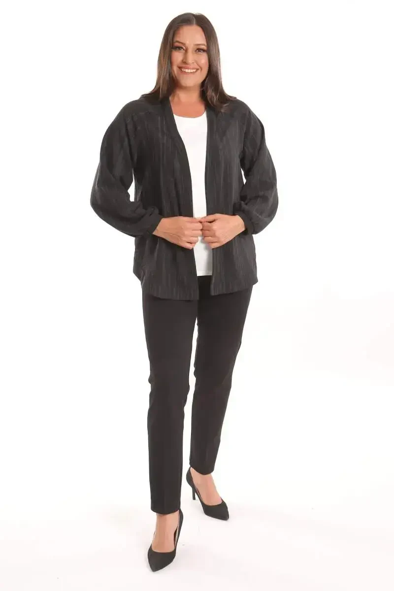 Trend42plus Большой Размер Ткани В Полоску С Эластичными Рукавами Свободного Покроя Черная Куртка