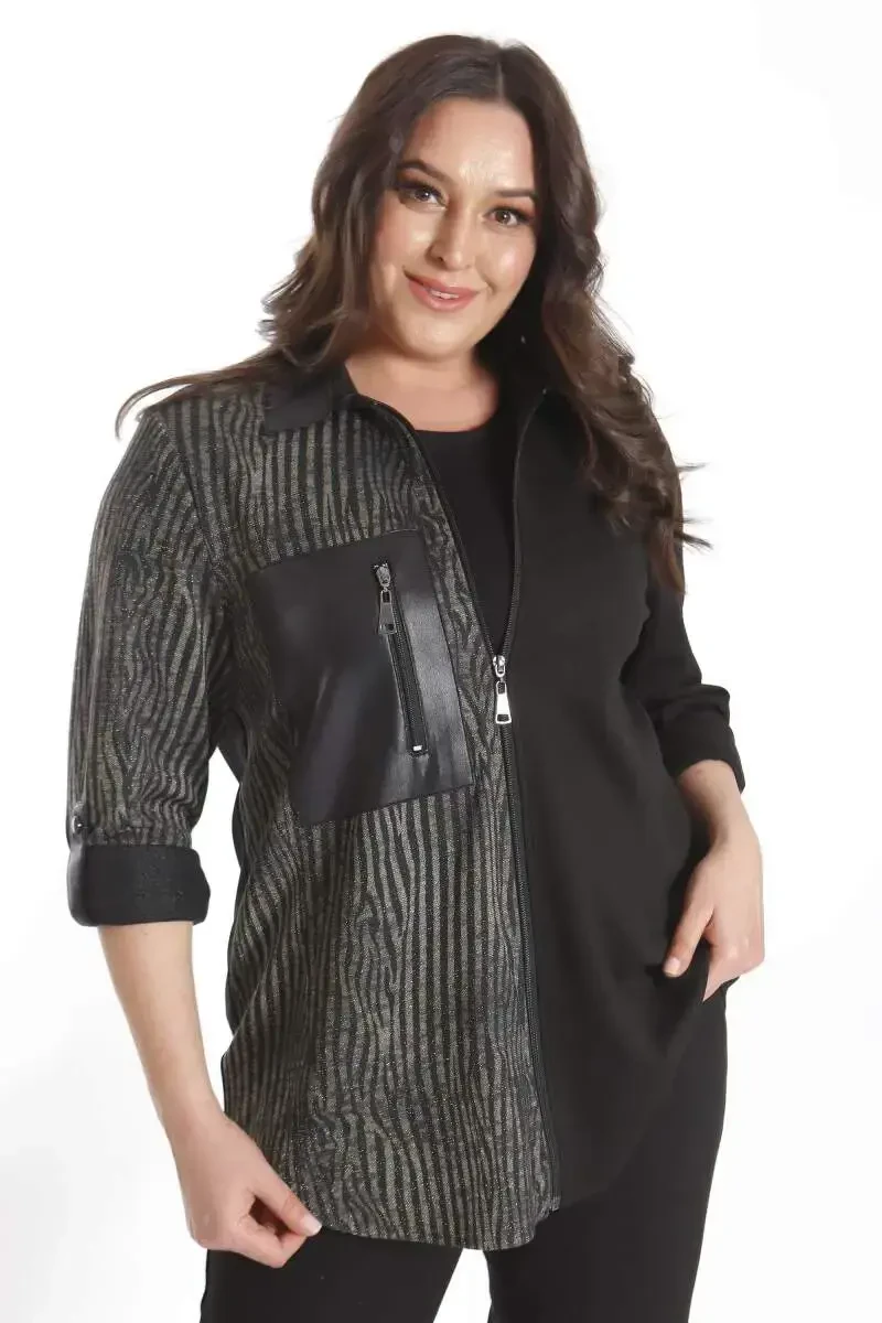 Большая рубашка, рубашка с волнистым узором, рубашка на молнии, вязаная рубашка, черная рубашка, мужская рубашка, Trend42plus, рубашка с карманами, современная рубашка, стильная рубашка