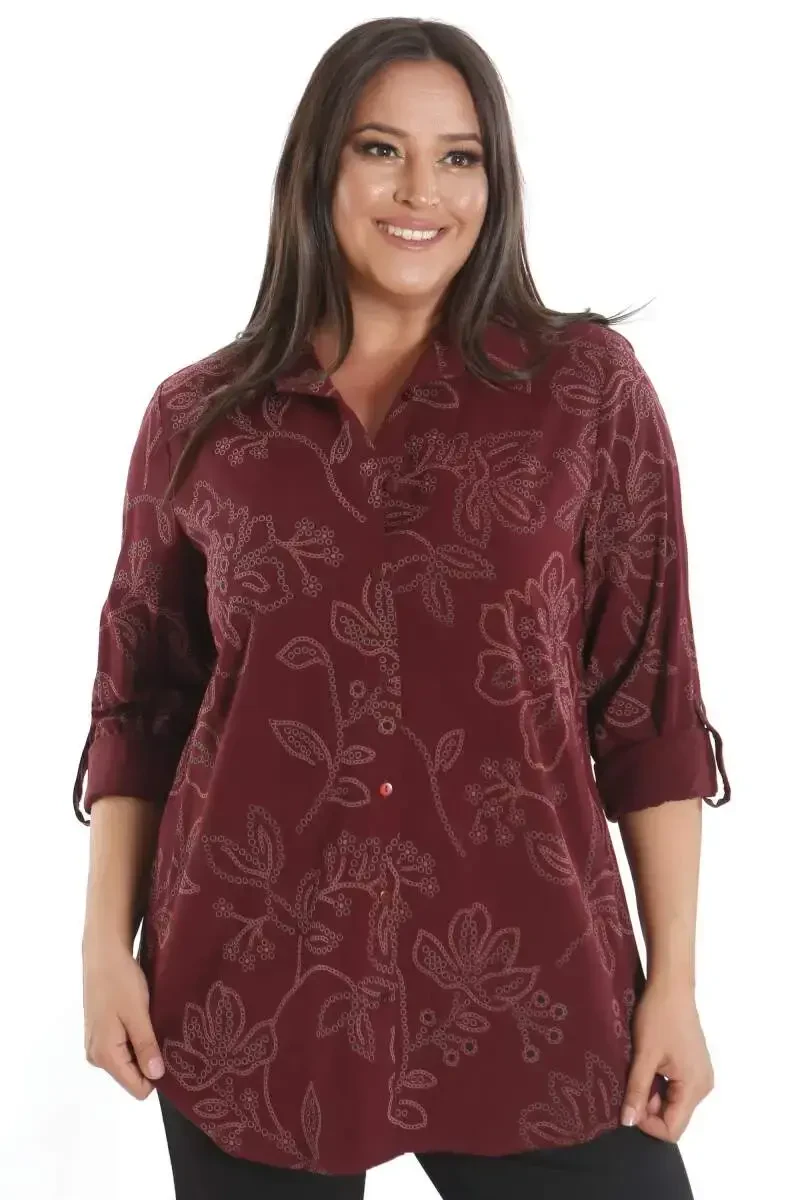 Trend42plus Büyük Beden Kendinden Desenli Bordo Gömlek ile sonbahar ve kış gardırobunuza sıcak bir dokunuş katın. Bu şık ve rahat gömlek, sadece bir giysi değil, aynı zamanda tarzınızı yansıtan bir ifade biçimidir. Bordo renginin asaletini, kendinden desenli kumaşın modern dokunuşuyla birleştiren bu gömlek, her ortamda dikkat çekmenizi sağlar. Rahat form kalıbı sayesinde gün boyu konforlu bir kullanım sunarken, desenli kumaşıyla da göz alıcı bir görünüm elde etmenize yardımcı olur.Bu gömlek, sadece şık olmakla kalmıyor, aynı zamanda işlevselliği de ön planda tutuyor. Katlanabilir kol özelliği sayesinde, farklı hava koşullarına ve ortamlara kolayca uyum sağlayabilirsiniz. İster uzun kollu, ister kısa kollu kullanın, her zaman stilinizi koruyun. Kalça altı boyu, hem pantolonlarla hem de eteklerle rahatlıkla kombinlenebilmesini sağlarken, vücut hatlarınızı da hoş bir şekilde vurgular.Trend42plus Büyük Beden Kendinden Desenli Bordo Gömlek, sonbahar ve kış aylarının enerjisini stilinize yansıtmak için ideal bir seçimdir. Kumaş pantolonlarla kombinleyerek şık bir ofis görünümü elde edebilir, hafta sonu rahat bir tarz için ise jeanlerle tamamlayabilirsiniz. Hafif dokusu sayesinde gün boyu rahatlığı hissederken, en yoğun günlerinizde bile enerjik kalabilirsiniz. Bu gömlek, sadece bir giysi değil, aynı zamanda yaşam tarzınızı yansıtan bir parçadır. Gardırobunuzun vazgeçilmezi olacak bu gömlek ile her zaman stil sahibi ve kendinden emin görüneceksiniz. Bordo renginin sıcaklığı ve desenli kumaşın modernliği ile her ortamda fark yaratın. Trend42plus ile stilinizi bir adım öteye taşıyın.