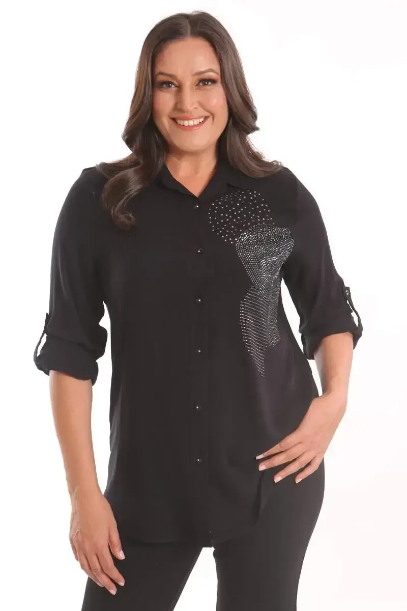 Trend42plus Katta Hajmli Qora Tosh Bosmali Ko'ylak