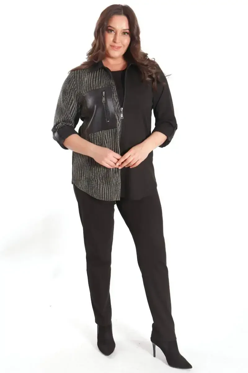Katta o'lchamli ko'ylak, to'lqinli naqshli ko'ylak, fermuarli ko'ylak, trikotaj ko'ylak, qora ko'ylak, erkaklar ko'ylagi, Trend42plus, cho'ntak detallari bilan ko'ylak, zamonaviy ko'ylak, chiroyli ko'ylak