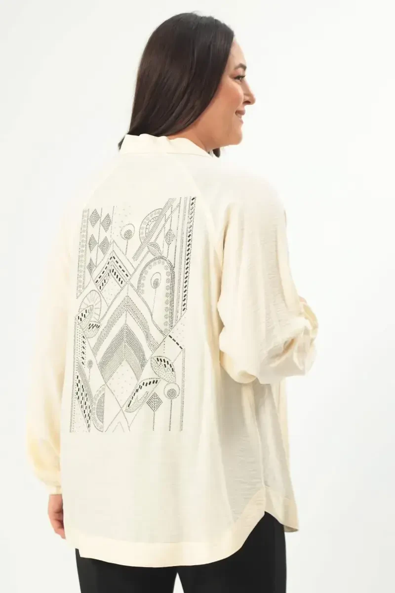 Take your style to the next level with the Trend42plus Plus Size Back Stone Print Oversize Ecru Jacket. This unique design will be an indispensable part of your wardrobe, offering both comfort and elegance. Thanks to its oversize cut, it allows you to achieve a modern and trendy look without restricting your freedom of movement. The ecru color of the jacket provides endless options by harmonizing with all kinds of combinations. Whether you prefer it with your daily clothes or for a more special event, this jacket will always complement your style.The Trend42plus Plus Size Back Stone Print Oversize Ecru Jacket stands out not only with its appearance but also with its quality. Thanks to its high-quality polyester fabric, it offers long-lasting use. The texture of the fabric feels soft to your skin, while its durability ensures that it remains like the first day for many years. The stone print detail on the back of the jacket adds a different dimension to the design while highlighting your elegance. This detail distinguishes the jacket from others, offering you a unique style.The collar band detail of the jacket provides a classic touch while offering a modern look. This detail harmonizes with the overall design of the jacket, helping you achieve a stylish and elegant look. Thanks to its hip-length, you can easily combine it with both trousers and skirts. This feature makes the jacket a versatile piece, making it easy to adapt to different styles. The Trend42plus Plus Size Back Stone Print Oversize Ecru Jacket is an ideal choice for women looking for both comfort and elegance. This piece, which should definitely be in your wardrobe, will always complement your style and make you feel special.
