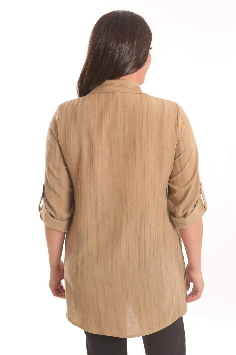 Make a statement with the Trend42plus Plus Size Brown Stone Print Allerli Shirt! This unique shirt combines comfort and style, making it a must-have for your wardrobe. The warm tone of brown and the stone print pattern will add a sophisticated touch to any outfit. Reflecting the energy of spring and summer, this shirt is an ideal choice for both everyday wear and special occasions.The Trend42plus Plus Size Brown Stone Print Allerli Shirt stands out not only with its appearance but also with the comfort it offers. Its 100% polyester fabric provides all-day comfort with its light and breathable structure. The hip-length and relaxed fit allow you to look stylish without restricting your freedom of movement. The foldable sleeve detail helps you adapt to different weather conditions and styles.You can easily combine this special design shirt with fabric trousers, shorts, or skirts. You can wear it inside your blazer for office elegance, or complete it with your sneakers for weekend outings. The Trend42plus Plus Size Brown Stone Print Allerli Shirt will make you the center of attention in any environment. May your energy never run out!