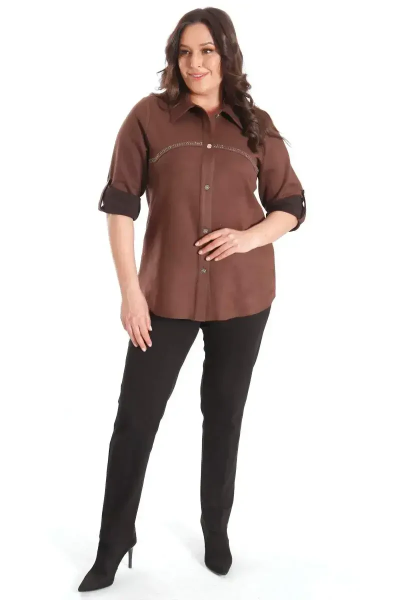 Big Size Suede Shirt | Stone Print Brown Trend42plus