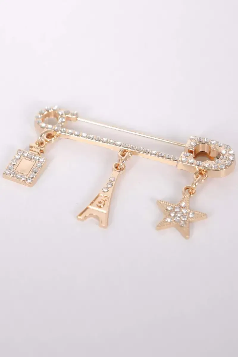 Shotlandiyalik igna kristalli brosh | Trend42plus tilla rangli brosh | Ko'z shaklidagi brosh