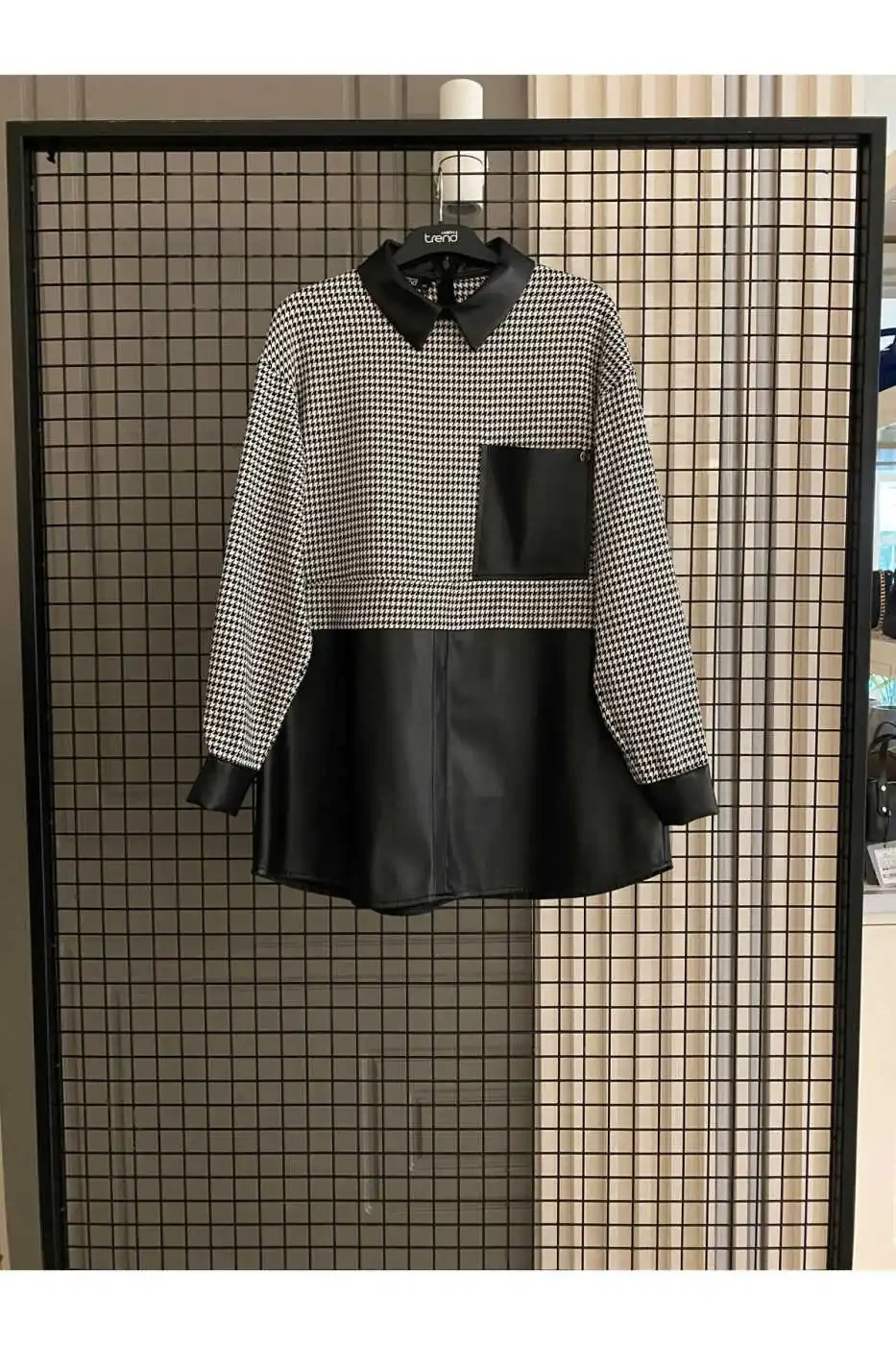 **Trend Tunics with Leather Pockets****Product Description:*** Practical dual pockets for everyday use* Designed specifically for adults, appealing to a wide range of age groups* Comfortable and stylish straight cut that flatters your silhouette* Eye-catching sequin details for a youthful and dynamic look* Part of the Young collection, boasting a modern and trendy design* Long silhouette for daytime and evening sophistication* Long sleeves make it ideal for transitional seasons* Durable and comfortable crepe weave* Made in Turkey, showcasing local production quality and craftsmanship* Relaxed fit for unrestricted movement and a stylish look* Woven fabric enhances durability, maintaining the garment's shape* Cotton material provides skin-friendly comfort* Modern and elegant V-neck design* On-trend striped pattern completes the stylish look**Technical Specifications:*** Minimum stock of 5* Maximum order quantity of 10* 15-day free return policy
