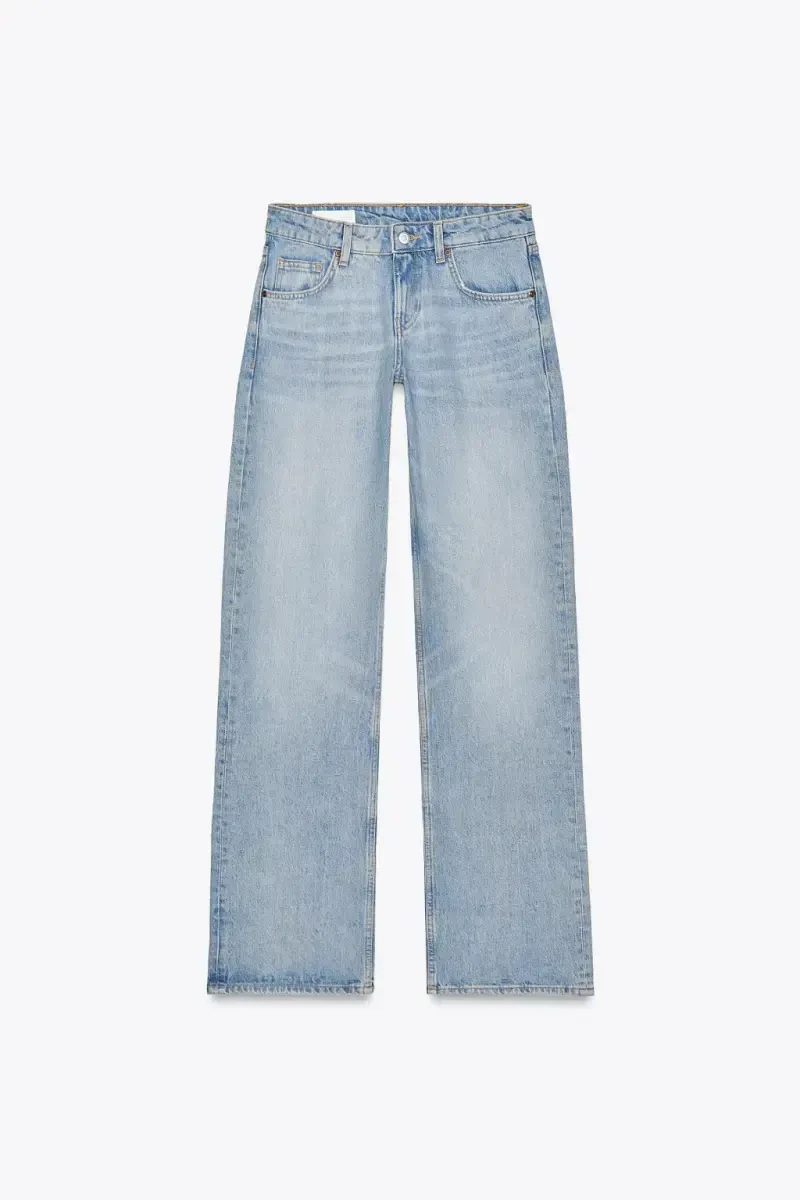TRF KENG PACHALI PASTI KAMARLI JINS. Ochiq ko'k rang. Past kamar. Keng pacha. Besh cho'ntakli. Fermuar va tugma bilan yopiladi. 100% paxta.