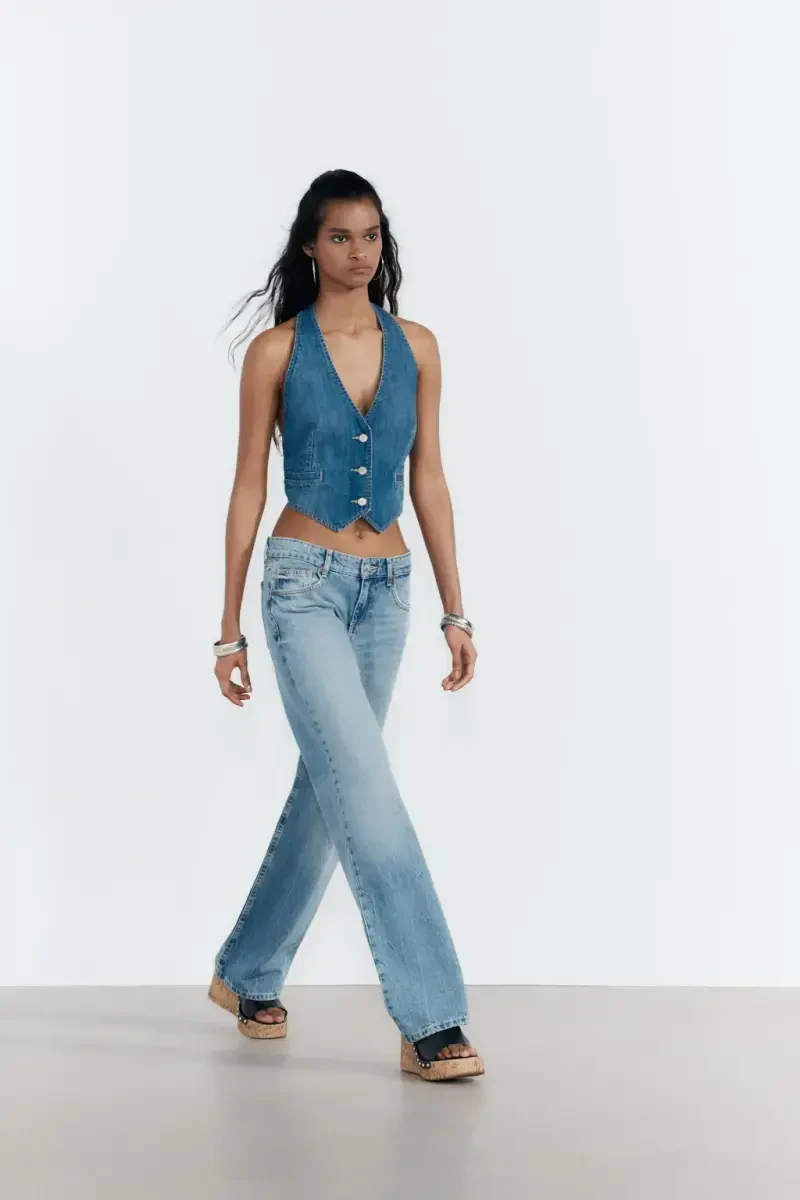 Keng va pastki tovonli jinsi shimlar