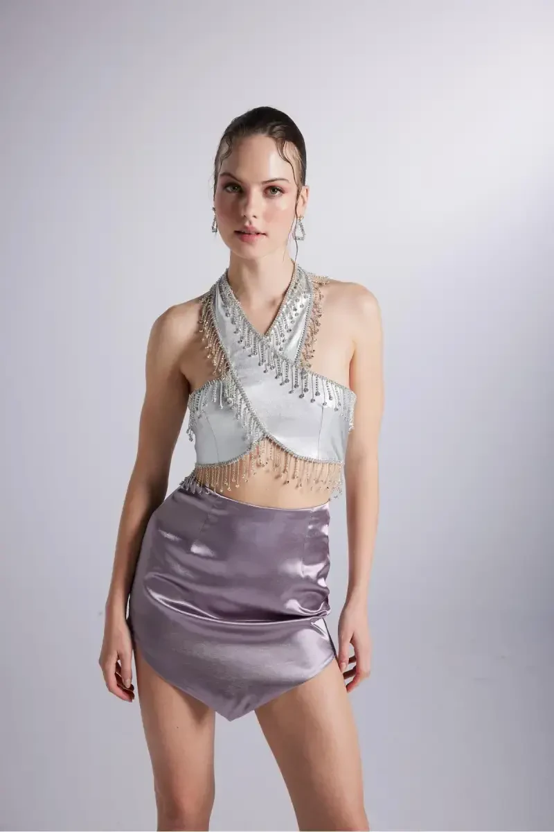 The Triangle Cut Shiny Satin Blaze Skirt Gray is a candidate to be an indispensable part of your wardrobe by combining elegance and modern design. The gray color tone symbolizes elegance and versatility, and with this skirt, you can achieve a sophisticated look in every combination. Made of high-quality polyester material, it ensures that the skirt is long-lasting and durable. In this way, you can use it with its original elegance for many years. The simple and plain design of the product offers a timeless style, making it a piece that you can easily prefer in every season. Whether for daily use or a special invitation, you can show off your elegance in any environment. Thanks to the practical zipper detail, it can be easily put on and taken off, which offers a great advantage in daily use. When properly maintained according to the washing instructions, the skirt retains its shape and color for a long time. Thanks to its lined structure, it prevents direct contact with your skin and offers a comfortable wearing experience. Thanks to its slim fit, it makes you feel light, while the normal waist height allows you to move comfortably. The triangle silhouette adds a modern and trendy look, taking your style one step further. You can easily choose this skirt, which you can easily choose in casual environments, and it will be indispensable for your daily combinations. The shiny surface with its satin texture creates an eye-catching effect, while the mini length makes your legs look longer than they are. Thanks to the flared silhouette, you will highlight your feminine lines and display a stylish and elegant stance. The triangular cut adds a modern touch to the skirt and does not restrict your freedom of movement. This skirt, which can be adapted to any environment from office elegance to weekend comfort, will be one of the most versatile pieces of your wardrobe. This special design skirt offered by Holly Lolly is an ideal choice for women who are looking for both elegance and comfort. The luxurious texture of the satin fabric and the noble stance of the gray color will add value to every combination. Whether you create a stylish look with high heels or a more comfortable style with sneakers, this skirt will always complement your style. Thanks to the stock status of the product and fast delivery advantages, you can have this stylish skirt immediately. Remember, you can order a maximum of 10 of these skirts and you have the option of free returns within 15 days.