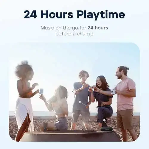 24 soatgacha davom etadigan o'yin vaqti bilan u uzun sayohatlaringizda yoki ochiq havoda tadbirlarda musiqangiz uzluksiz oqishini ta'minlaydi. IPX7 suvga chidamliligi bilan u yomg'irda yoki hovuz yonida tashvishlanmasdan foydalanishingiz mumkin.
