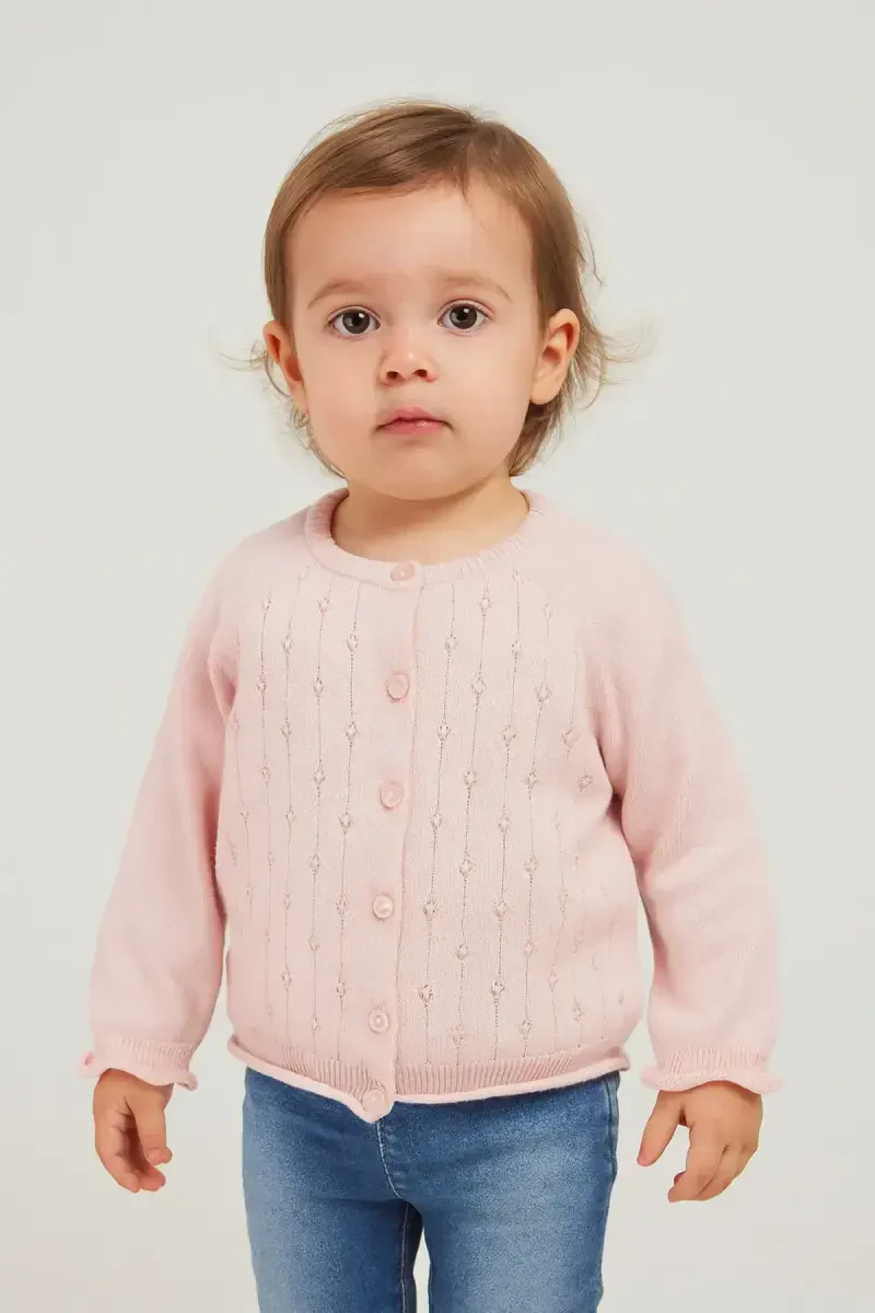 Qiz Bebek Triko Hırka | Pudra Ajurlu | 6-24 Ay