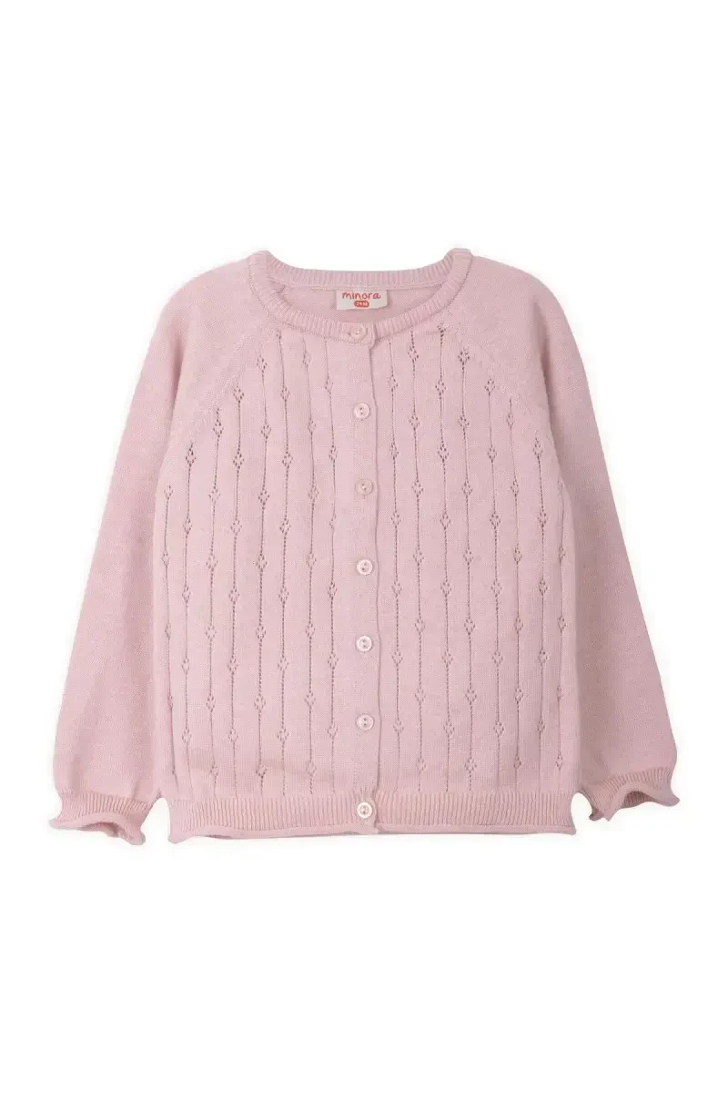 Трикотажный кардиган для девочки | Пудра ажурная | 6-24 месяца