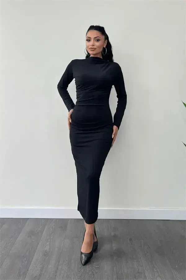 Познакомьтесь с платьем-карандаш со сборками из трикотажной ткани, которое станет незаменимым предметом вашего гардероба, сочетающим в себе элегантность и комфорт! Этот специальный дизайн в благородном черном цвете позволит вам привлекать внимание в любой обстановке. Благодаря высококачественной трикотажной ткани оно обеспечивает комфорт в течение всего дня, а облегающий крой-карандаш подчеркивает ваш женственный силуэт. Легкий и дышащий материал не требует подкладки. Самая яркая деталь платья — сборки, которые придают дизайну движение и современный вид, а также искусно скрывают недостатки, помогая добиться более изящного вида. Длина миди идеально подходит как для повседневной носки, так и для особых случаев. Создайте элегантный образ с туфлями на каблуках или непринужденный стиль с сандалиями, это платье легко адаптируется к любому стилю. Благодаря вневременной элегантности черного цвета и современным деталям дизайна, платье-карандаш со сборками из трикотажной ткани станет фаворитом стильных женщин. Обязательно примерьте это платье, чтобы почувствовать себя особенной и уверенной. Если вы ищете универсальную и стильную вещь, которую можно носить в любое время года, то это платье именно то, что вам нужно! Не упустите это платье, которое легко сочетается с другими вещами в вашем гардеробе, подчеркнет вашу элегантность и позволит вам чувствовать себя особенной в любой обстановке!