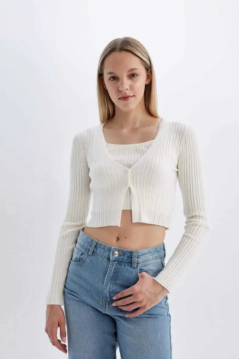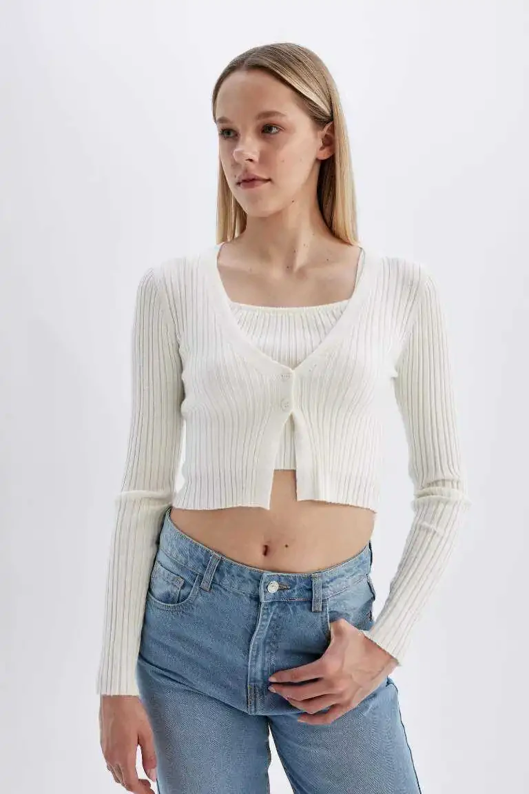Дополните свой стиль трикотажным кардиганом Coool Regular Fit с V-образным вырезом Экру и позвольте своей элегантности говорить сама за себя!