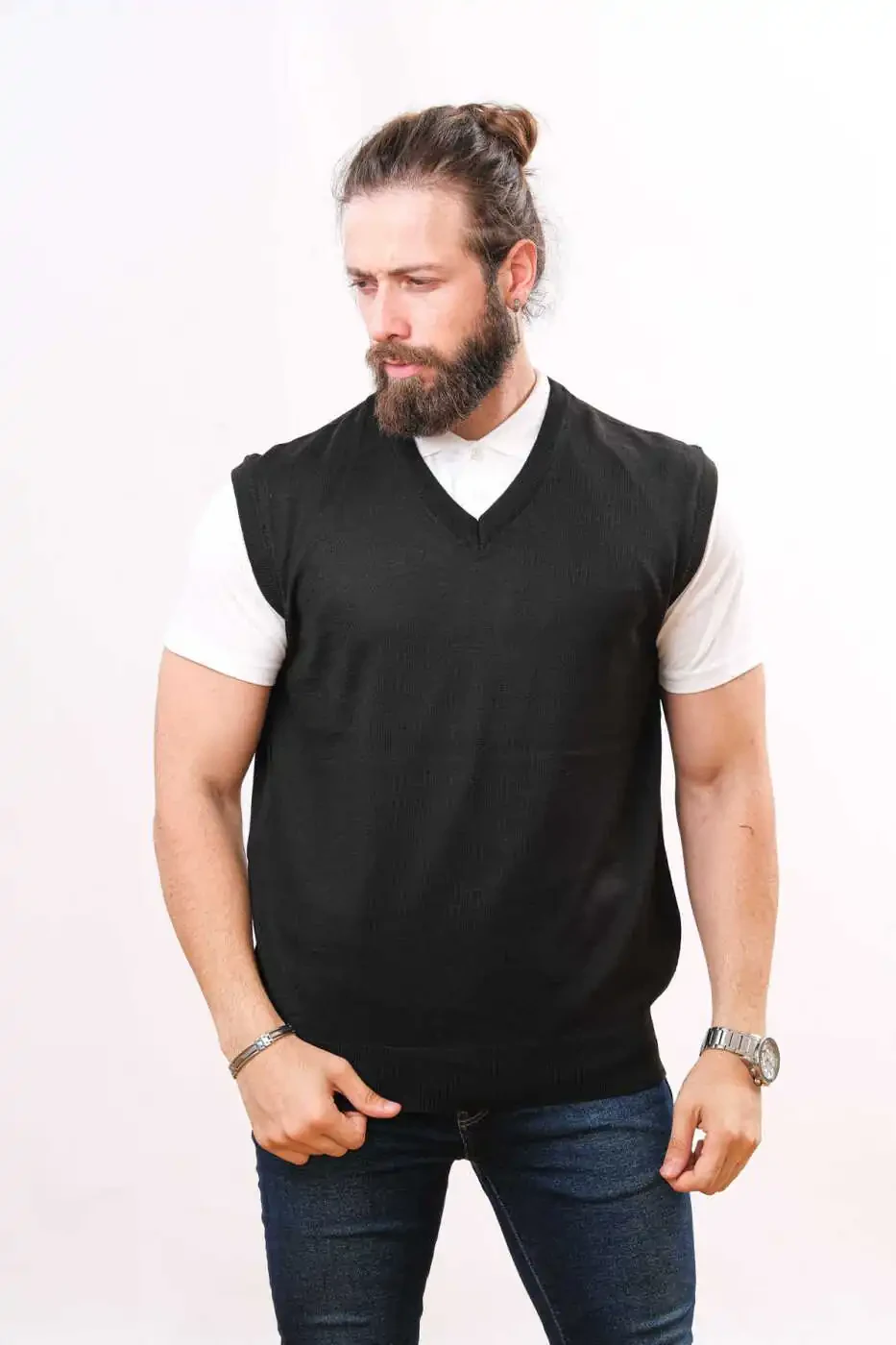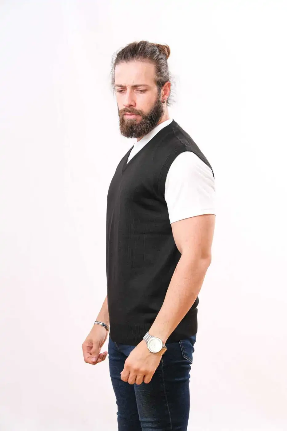 Шерстяной безрукавный трикотажный свитер - Черный - Теплый и стильный зимний свитер