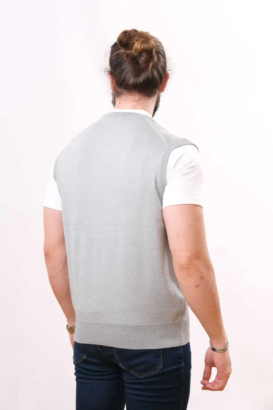 Шерстяной безрукавный трикотажный свитер светло-серый - Стильная и теплая зимняя одежда