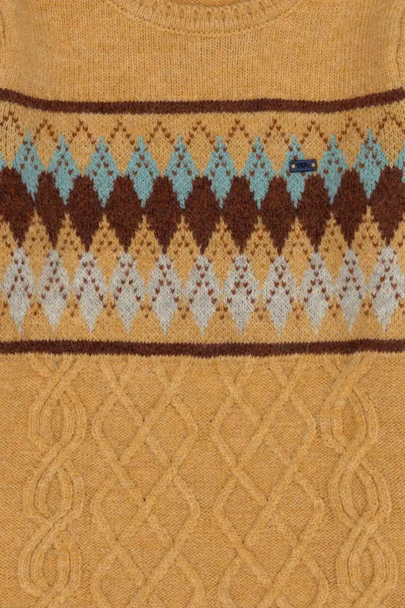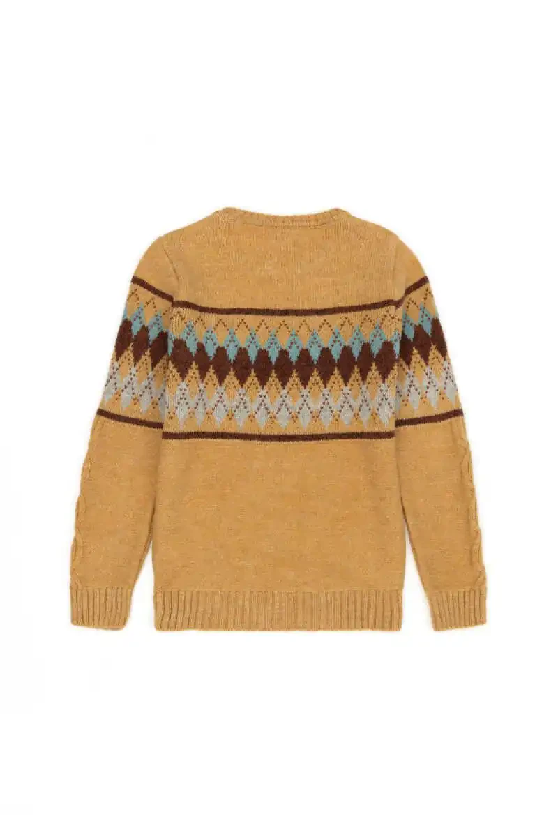 Круглый воротник придает стильный и практичный вид, а фактура песочного меланжа прекрасно дополняет любой образ. Его легкий дизайн позволяет ребенку свободно двигаться без ограничений. Этот свитер идеально подходит для создания разных комбинаций. Вы можете создать повседневный образ с джинсами, шортами или спортивными брюками. Для особых случаев можно создать стильный ансамбль с костюмом или классическими брюками.