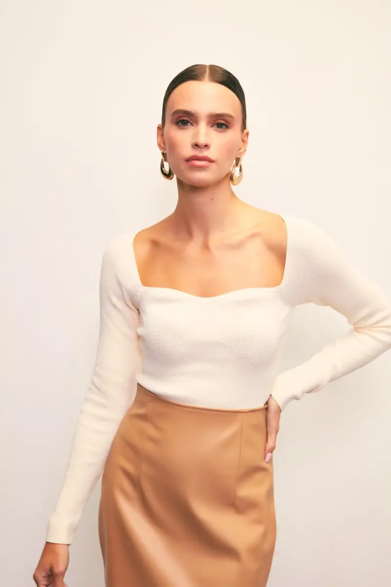 Идеальный выбор для стильного и комфортного образа, трикотажный топ с длинным рукавом, эластичный, с собственным узором, вырезом в форме сердца, станет неотъемлемой частью вашего гардероба. Его эластичная ткань идеально подходит к вашему телу и обеспечивает удобство использования. Его собственные узоры добавляют движения вашему стилю, а вырез в форме сердца создает женственный образ. Топ идеально подходит для разных комбинаций. Вы можете добиться повседневного шика с джинсами, женственного образа с юбками.