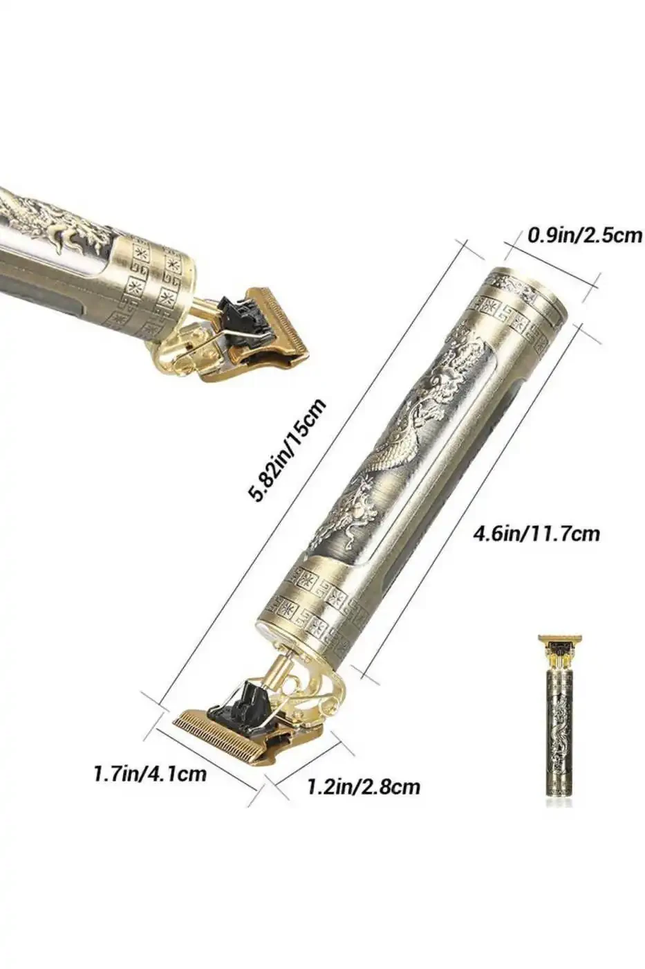 Испытайте безупречное бритье с помощью T Бритвы для стрижки волос и бороды! Эта бритва с элегантным золотым дизайном дракона придаст элегантность вашему стилю и обладает прочной и долговечной конструкцией. Избавьтесь от нежелательных волос с помощью функции среза 0 мм. Бритва обеспечивает беспроводную свободу благодаря своему зарядному устройству и может легко использоваться даже в поездках.