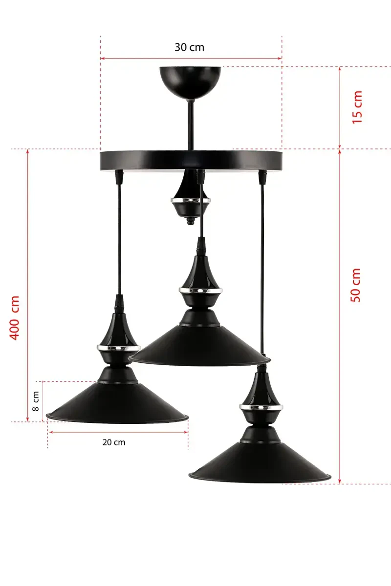 The specially designed lampshades known as Japanese Hats offer a sophisticated and modern look. The lampshades provide a soft light diffusion, offering a comfortable and non-glaring lighting experience. The three-light pendant design is ideal for illuminating large areas. It can be easily used in spaces such as living rooms, dining rooms, kitchens, and bedrooms.