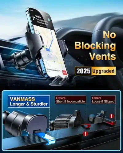 VANMASS Car Phone Holder - Secure Driving with 2024 Strongest Suction & Clip