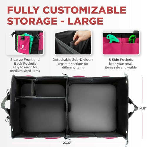 SIMPLY THE BEST - LeClassiqueShop, presents the highly anticipated, unique and EXCLUSIVE trunk organizer to the Trunk Crate Pro (Patented) brand. Our car accessories for women is an Eco-Friendly professional grade, Heavy Duty Material trunk organizer with straps: Best for suv, car, truck, jeep, mini van, vehicles in Automotive Interior Accessories. It is hand crafted using premium highest grade Oxford Polyester material. Size is 23.6" (L)*14.6" (W) * 12.5" (H) DURABLE - BUILT TOUGH to withstand wear and tear of vehicle use. Your car trunk organizer is manufactured with the strongest and most durable Oxford polyester fabric which can withstand the heavy use and pass the test of time. It is water resistant and abrasion resistant. It is the Everest of trunk organizers. It features reinforced stitching on areas that receive the most wear. This particular material is water resistant and makes this organizer not only durable, but easy to clean. USABILITY - EASY TO USE AND INSTALL, ANYONE CAN DO IT! Gone are the days of a messy car. Simply unfold and load any items you desire. It is one of the largest and most effective backseat organizer on the market. It has a clip and hold sub-divider, a middle sub-divider, rigid base plates and center that allows you to stay organized in your vehicle. With its well-constructed design, the organizer stays firm without any cargo in it. INNOVATIVE DESIGN AND MULTI-FACETED DESIGN - The cargo storage container was designed and invented after months of testing and sampling with the best factories. It combines all the strengths and addresses the shortcomings of existing trunk organizers. It has the most pockets, 3 compartments, removable sub-dividers, can be folded half-length as a seat organizer, light weight yet unbreakable. It is fully-collapsible for easy storage, and is designed to prevent your cargo from sliding