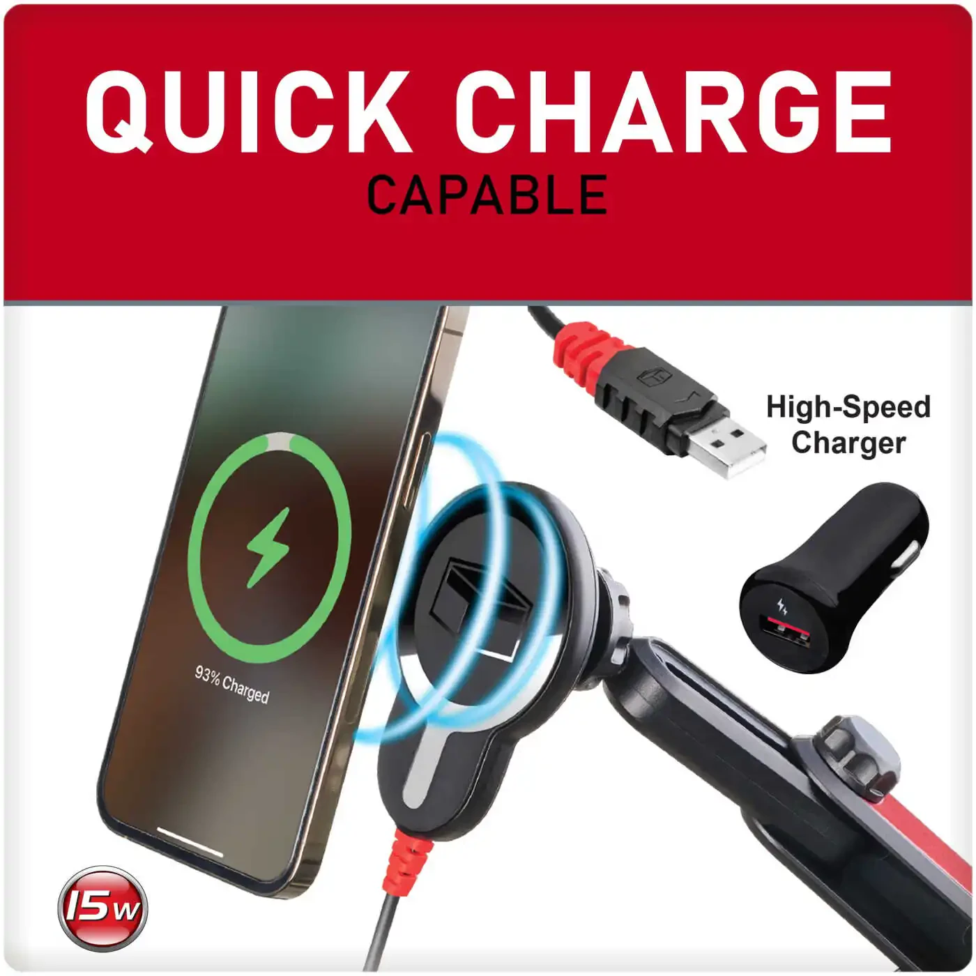 Tuff Tech 15W Mag Safe Mos dosh bo'lgan telefon ushlagichi telefoningizni zaryadlangan va erishish mumkin bo'lgan holda saqlash uchun juda qulay aksessuar hisoblanadi. U oxirgi model iPhoneʼlarni ushlab turishi va simsiz tarzda quvvatlantirishini taʼminlaydigan mukammal tarzda moslangan magnitlardan tashkil topgan MagSafe bilan mos cradleʼga ega; MagSafe yopishqoq metall halqa boshqa smartfon brendlari bilan foydalanishga imkon beradi. Qurilma avtomobilingizning 12V qo'shimcha rozetkasi yoki sigaret qutisi tomonidan quvvatlanadi va simsiz quvvatlantirishga qodir telefonlarni tezda ishga tayyor bo'lishi uchun 15W gacha quvvat hosil qilishi mumkin. Super Stick vakuum chashka usuli yordamida uni derazangizga yoki boshqaruv paneliga joylashtirishingiz mumkin. Kengaytiriladigan tutqich telefonlarni standart modellarga nisbatan beshdan yetti dyuymga yaqinroq olib keladi. Buriladigan sharnirli bo'g'im 360 daraja harakat qiladi va mahkamlash uchun joyida qulflanishi mumkin, bu esa xavfsiz bir qo'lda foydalanishni taʼminlaydi. Ushbu qurilma 12V quvvat ulagichi va 3 fut USB-C kabelidan iborat. Ajoyib bardoshlilik va mo'l-ko'l xususiyatlar Tuff Tech 15W Mag Safe mos simsiz magnitli zaryadlovchi va teleskopik telefon ushlagichini hamma joydagi haydovchilar uchun zamonaviy muhim qurilmaga aylantiradi.