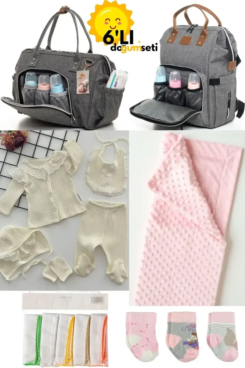 Tug'ilish to'plami Chaqaloq parvarishi Ryukzak va yelkali sumkasi chaqalog'ingizning asosiy ehtiyojlarini qondirish uchun mo'ljallangan. Mahsulotlarning barchasi chaqalog'ingizning sog'lig'iga zarar bermaydigan materiallardan tayyorlangan. Sumka uzoq muddatli foydalanish uchun chidamli materiallardan yasalgan va osongina tozalanadi. Adyol chaqalog'ingizning terisiga yumshoq tegish imkonini beradi va uni issiq tutadi. Nam salfetkalar amaliy va gigienik foydalanishni taklif etadi. Paypoqlar chaqalog'ingizning oyoqlarini issiq tutib, uning qulayligini oshiradi. Kulrang rang ham qiz, ham o'g'il bolalar uchun mos keladi va zamonaviy ko'rinishga ega.