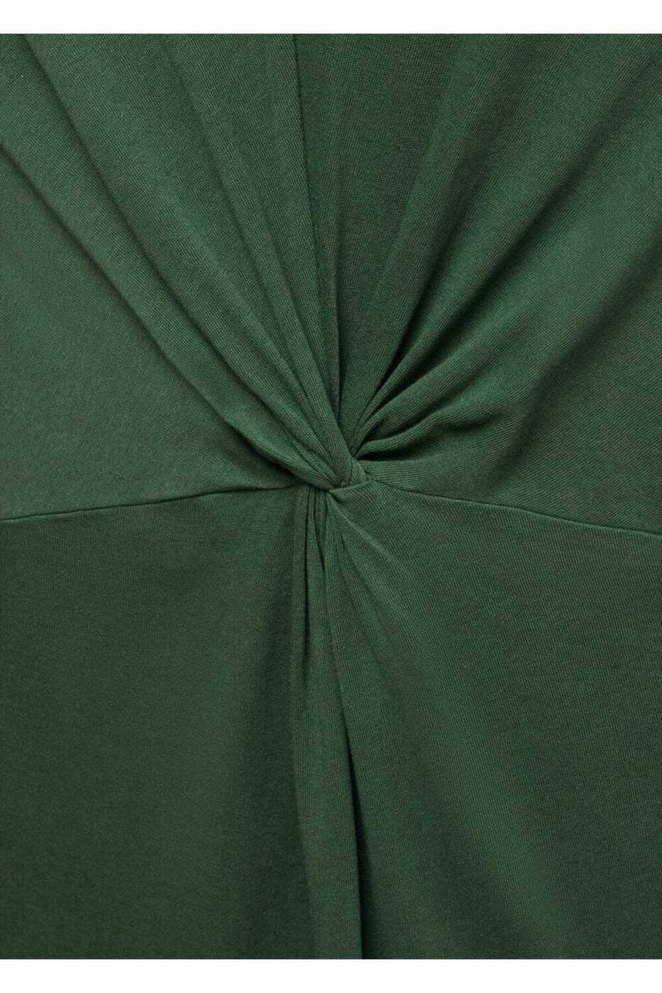 Midi uzunlik, tekis dizayn, yumaloq yoqa, yengsiz, keng kamarcha, ochilmaydigan, tugunli tafsilotlar.