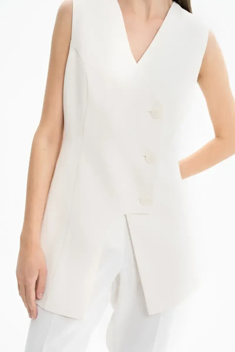 Tugmali chiroyli yelek - Ekru | Paxtali yelek modellari