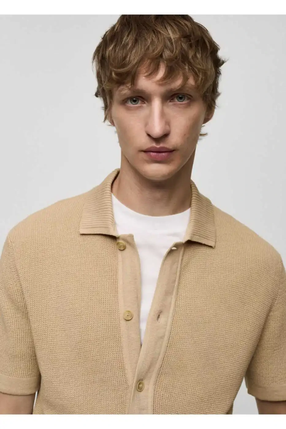 Onlayn Ekskluziv, Paxta mato, Mikro tuzilmali yupqa triko mato, Ipdan to'qilgan klassik yoqa, Kalta yengli, To'g'ri pa, Modelning bo'yi 190 sm. va M o'lcham kiygan, Old tomondan tugmachali yopiq. 100% paxta. Orqa uzunligi 72,5 sm.