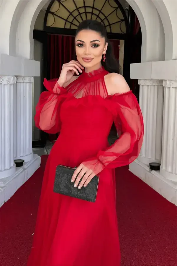 To'r matoli volan detallari bilan bezatilgan dizaynerlik libosi bilan o'zga bayramlaringizda va kechalaringizda ko'zni qamashtirishga tayyor bo'ling! Qizil rangning jozibasi va to'r matoning yengilligi bilan yaratilgan bu libos, nafislik va qulaylikni birga taqdim etadi. Yelkadan boshlab 160 sm uzunligi bilan nafis siluet yaratadigan ushbu dizayn mo'jizasi har bir qadamda sizga hamroh bo'ladi. Orqadan fermuar bilan qulay tarzda kiyiladi va yechiladi. Ichki qismidagi astar kun bo'yi qulay foydalanishni ta'minlasa, ko'krak qismi detallari qo'shimcha yordam va qulaylik beradi. Volan detallari libosga harakat va dinamizm bag'ishlasa, to'r matoning shaffof tuzilishi ham nafislikni oldinga chiqaradi. To'liq bichim va elastik tuzilishi bilan tanaga mukammal mos keladigan bu libos har bir o'lchamga mos keladi. Xoh maxsus kechada, xoh dabdabali kechki ovqatda bo'ling, To'r matoli volan detallari bilan bezatilgan dizaynerlik libosi bilan har qanday muhitda farq yaratasiz. Qizil rangning energiyasi va libosning sehrli dizayni sizni kechaning yulduzi qilishga nomzod. Ushbu maxsus dizaynerlik libosi garderobingizning ajralmas qismiga aylanadi va sizga har doim nafis va ishonchli his beradi. Matosining sifati va mahoratidagi e'tibor, uni ko'p yillar davomida birinchi kundagidek ishlatishingizni ta'minlaydi. To'r matoli volan detallari bilan bezatilgan dizaynerlik libosi bilan o'zingizni maxsus his qiling va nafosatingizni namoyish eting. Unutmang, to'g'ri kiyim shunchaki tanlov emas, balki ayni paytda pozitsiyadir. Ushbu libos bilan o'z pozitsiyangizni eng yaxshi tarzda aks ettiring.