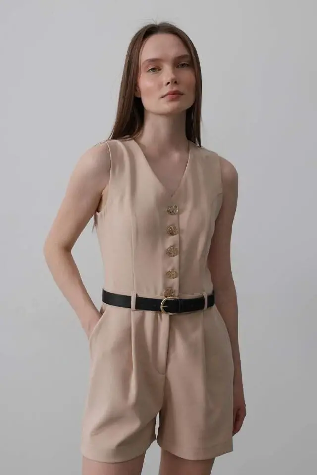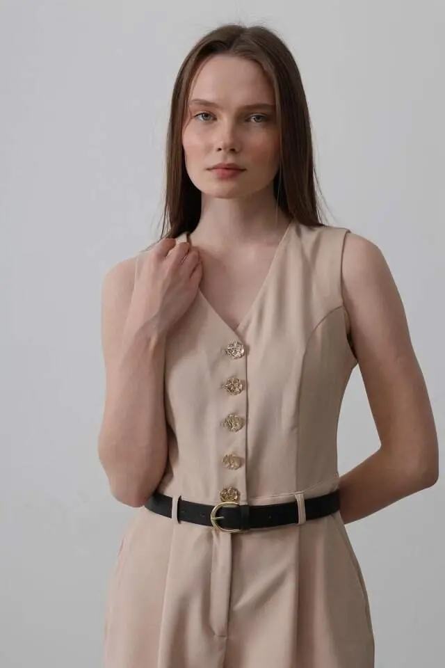 Meet our stone-colored jumpsuit that combines elegance and comfort! This jumpsuit is a candidate to be an indispensable part of your wardrobe. This design, which you can easily prefer for both daily use and special occasions, offers a modern and elegant look.Product DescriptionJumpsuit - Stone color has a stylish and functional design that reflects the trends of today's fashion. Thanks to its high-quality fabric, it offers comfortable use throughout the day, while its form-fitting cut creates an elegant silhouette. The natural and sophisticated stance of the stone color allows you to easily complete your style by adapting to all kinds of combinations. Whether you want to achieve a casual chic with sneakers or attend a special event with heels, this jumpsuit allows you to express your style in any environment. The fabric of the jumpsuit prevents sweating with its breathable structure and helps you stay fresh all day long. In addition, thanks to its wrinkle-resistant feature, it ensures that you always look well-groomed and tidy. The design of the jumpsuit wraps your body without restricting your freedom of movement and offers you a comfortable wearing experience. Its easy-to-wear and remove structure also saves you time. This jumpsuit not only offers a stylish look but is also a practical and useful option. This piece, which should definitely be in your wardrobe, is an ideal choice for every season and every environment. While the stone color represents naturalness and simplicity, the modern cut of the jumpsuit also highlights your elegance. Enjoy both comfort and elegance with this jumpsuit. You can reflect your own style by combining it with different accessories and always achieve a striking look. The durable fabric of the jumpsuit offers long-lasting use and retains its original form after washing. Thus, it continues to be an indispensable part of your wardrobe for many years. This jumpsuit is not just a piece of clothing, but also a style statement. Choose this jumpsuit to reflect your own unique style and always look stylish.Product Features* High quality fabric* Comfortable and convenient use* Body-fitting cut* Stone color* Breathable fabric structure* Wrinkle resistant* Design that provides freedom of movement* Easy to put on and take off* Suitable for all kinds of combinations* Long lasting useAdditional InformationThe model is wearing size S. Our product is available in different sizes. Please review our size chart and choose the size that suits you best. The color tone of the product may vary slightly depending on your screen settings. Clean according to washing instructions.