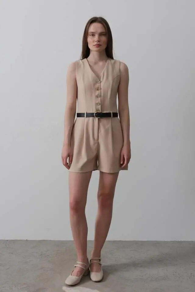 Shiklik va qulaylikni birga taqdim etuvchi, tosh rangli kombinezonimiz bilan tanishing! Ushbu kombinezon garderobingizning ajralmas qismiga aylanishga da'vogar. Ham kundalik foydalanishda, ham maxsus kunlarda bemalol tanlashingiz mumkin bo'lgan ushbu dizayn, zamonaviy va nafis ko'rinishni taqdim etadi.**Mahsulot tavsifi**Kombinezon - Tosh rangi, bugungi moda nafasini olgan, chiroyli va funktsional dizaynga ega. Yuqori sifatli matosi tufayli kun bo'yi qulay foydalanishni ta'minlaydi, tana shakliga mos keladigan kesimi tufayli esa nafis siluet yaratadi. Tosh rangining tabiiy va nafisligi, har qanday kombinatsiyaga moslashib, uslubingizni osongina to'ldirishga imkon beradi. Xoh sport poyabzallari bilan kundalik chiroy yarating, xoh poshnali tuflilar bilan maxsus tadbirga qatnashing; ushbu kombinezon har qanday muhitda uslubingizni namoyon etishga imkon beradi. Kombinezonning matosi nafas oladigan tuzilishi bilan terlashning oldini oladi va kun bo'yi tetik bo'lishingizga yordam beradi. Bundan tashqari, ajin tushishga chidamli xususiyati tufayli har doim ozoda va tartibli ko'rinishingizni ta'minlaydi. Kombinezonning dizayni harakat erkinligingizni cheklamay, tanangizni o'rab oladi va sizga qulay foydalanish tajribasini taqdim etadi. Oson kiyilib yechiladigan tuzilishi tufayli esa vaqtni tejashingizga imkon beradi. Ushbu kombinezon nafaqat chiroyli ko'rinishni taqdim etadi, balki amaliy va foydali variantdir. Garderobingizda albatta bo'lishi kerak bo'lgan ushbu buyum, har bir fasl va har qanday muhit uchun ideal tanlovdir. Tosh rangi, tabiiylik va soddalikni ifodalasa, kombinezonning zamonaviy kesimi ham chiroyingizni oldinga chiqaradi. Ushbu kombinezon bilan ham qulaylikdan, ham chiroyning zavqini oling. Turli aksessuarlar bilan kombinatsiyalab, o'z uslubingizni aks ettirishingiz va har doim diqqatga sazovor ko'rinishga ega bo'lishingiz mumkin. Kombinezonning bardoshli matosi, uzoq muddatli foydalanishni ta'minlaydi va yuvishdan keyin dastlabki shaklini saqlab qoladi. Shunday qilib, uzoq yillar davomida garderobingizning ajralmas qismiga aylanishda davom etadi. Ushbu kombinezon, shunchaki kiyim emas, balki uslub ifodasidir. O'ziga xos uslubingizni aks ettirish va har doim chiroyli ko'rinish uchun ushbu kombinezoni tanlang.**Mahsulot xususiyatlari*** Yuqori sifatli mato* Qulay va konforli foydalanish* Tana shakliga mos keladigan kesim* Tosh rangi* Nafas oladigan mato tuzilishi* Ajin tushishga chidamli* Harakat erkinligini ta'minlovchi dizayn* Oson kiyilib yechiladi* Har qanday kombinatsiyaga mos* Uzoq muddatli foydalanish**Qo'shimcha ma'lumotlar**Modelda S o'lchamdagi kiyim bor. Mahsulotimizning turli o'lcham variantlari mavjud. Iltimos, o'lcham jadvalimizni ko'rib chiqing va sizga eng mos o'lchamni tanlang. Mahsulotning rang toni, ekran sozlamalaringizga qarab biroz farq qilishi mumkin. Yuvish bo'yicha ko'rsatmalarga muvofiq tozalang.