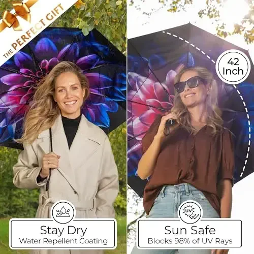 TUMELLA eng kuchli shamolga chidamli sayohat soyaboni sizning sayohatlaringizda sizga hamroh bo'ladigan mukammal yechimdir. Uning ixcham dizayni, ustun xususiyatlari va ko'zni qamashtiruvchi estetikasi bilan bu soyabon sizni har qanday ob-havo sharoitidan himoya qiladi, shu bilan birga uslubingizni to'ldiradi. Kichik, kuchli, engil, ko'chma va avtomatik buklanish xususiyati tufayli u hayotingizni osonlashtiradi. Yomg'irda ho'l bo'lishdan yoki quyoshning zararli nurlaridan himoyalanishni istaysizmi, Tumella sizga eng yaxshi himoyani taqdim etadi. Suv o'tkazmaydigan qoplamasi va shamolga chidamli ikki qavatli tuzilishi bilan u yomon ob-havo sharoitlariga qarshi turadi. Eyndxoven universitetida 70+MPH tezlikdagi shamol tunnelida sinovdan o'tgan (1-toifa bo'roniga teng). Ushbu testlar Tumellaning ajoyib chidamliligini isbotladi. Yengil vazni tufayli uni osongina olib yurish mumkin va uni bir qo'l bilan qulay tarzda ishlatish mumkin. Avtomatik ochish va yopish xususiyati amaliy foydalanish tajribasini taqdim etadi. Uni sumkangizda, ryukzakingizda yoki avtomobil eshigida osongina saqlash mumkin. 11 x 2,75 dyuym o'lchamlari va 1 funtdan kamroq og'irligi bilan uni tashish juda oson. 42 dyuymli keng qamrovli maydoni tufayli u sizni va yaqinlaringizni yomg'ir yoki quyoshdan samarali himoya qiladi. 40 dan ortiq noyob, jonli va chiroyli dizayn variantlari bilan siz o'zingizning uslubingizga mos Tumellani topishingiz mumkin. Yuqori sifatli bosma san'at asarlari soyaboningizga estetik teginish qo'shadi. Yaqinlaringizga sovg'a qilishingiz mumkin bo'lgan zamonaviy va qulay variant. Faqatgina yomg'irda emas, balki quyoshli ob-havoda ham Tumellaning UPF50+ quyoshdan himoyasi tufayli teringizni zararli UV nurlaridan himoya qilishingiz mumkin. Bu xususiyat Tumellani boshqa soyabonlardan ajratib turadi va uni ko'p qirrali aksessuarga aylantiradi. Yaxshilangan quyoshdan himoya qilish Tumellaning ajoyib dizaynlarining jonliligi va ko'rinishini oshiradi, shuning uchun u yanada go'zallashadi. Tumella bilan ham xavfsiz bo'ling, ham nafosatingizni saqlang.