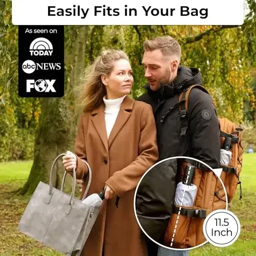 TUMELLA Shamoldan kuchli himoyalovchi sayohat soyaboni (ixcham, a'lo va chiroyli), kichik, kuchli, ammo engil, ko'chma va avtomatik yig'iladigan yomg'ir soyaboni, bardoshli premium tutqich, mashina va ryukzakka mos