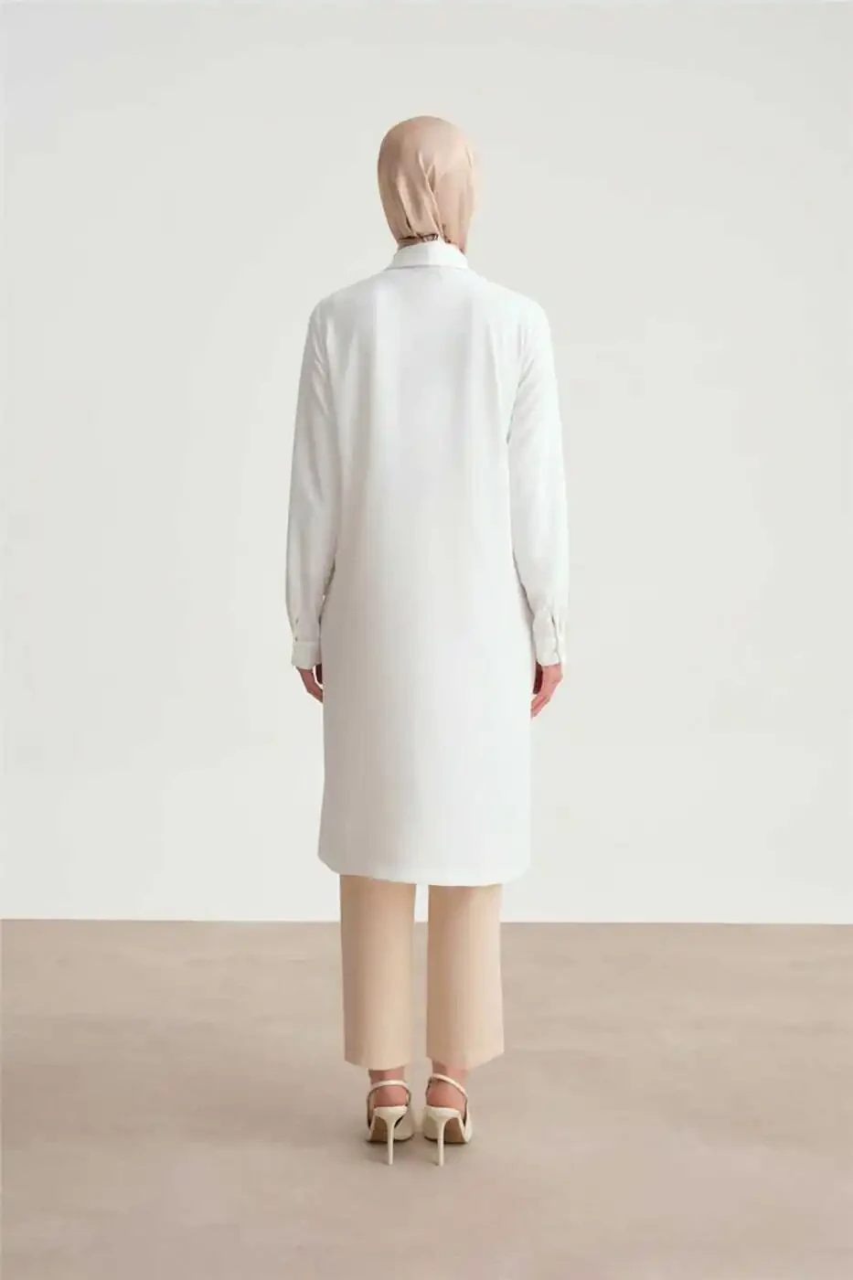 Tunik Ort4208 Ekru: Velosiped yoqali, pastga tushirilgan yeng, qulay bichimli tunik