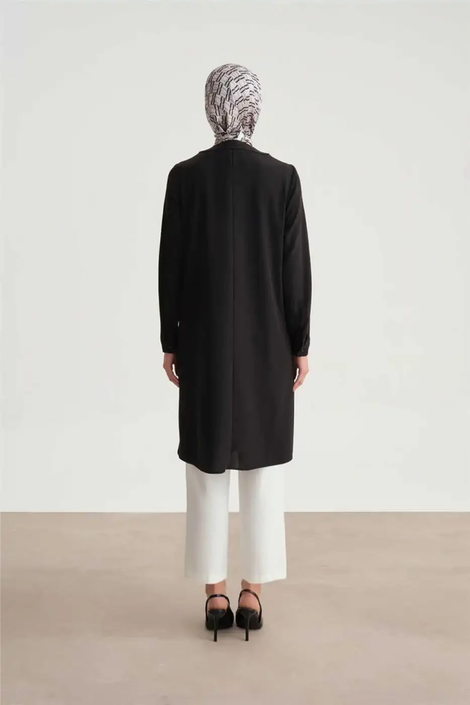 * Uzoq yeng uzunligi hijob kiyimlariga mos keladi va ayni paytda oqlangan ko‘rinishini saqlaydi