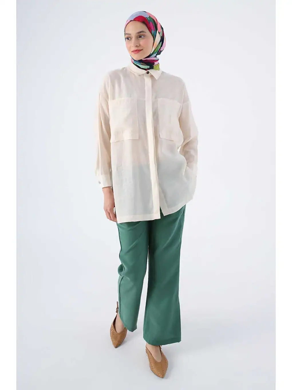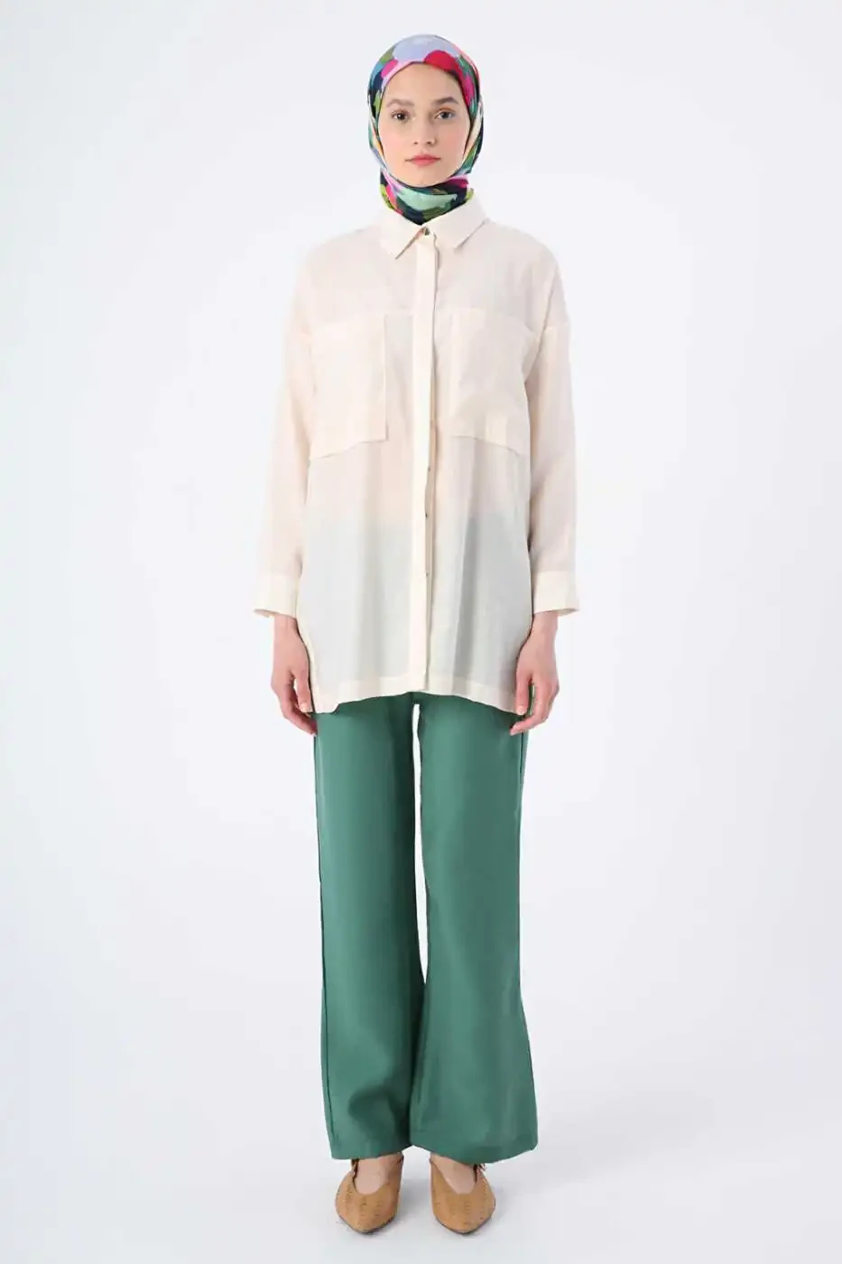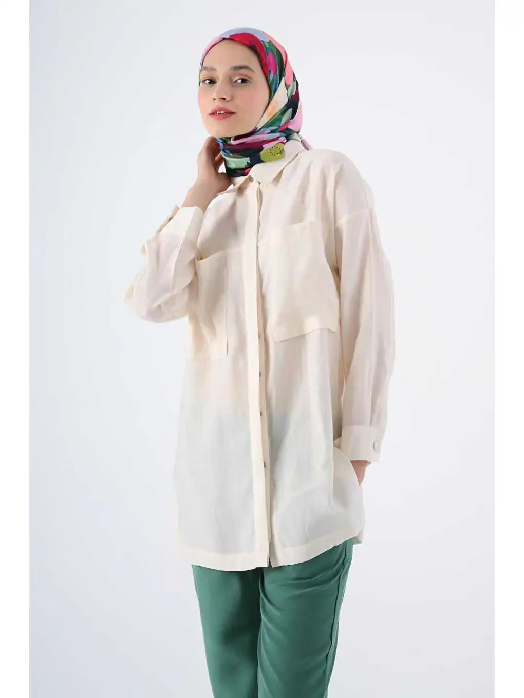 Туника-рубашка из смесовой ткани с свободным кроем цвета слоновой кости - Стиль и комфорт в одном